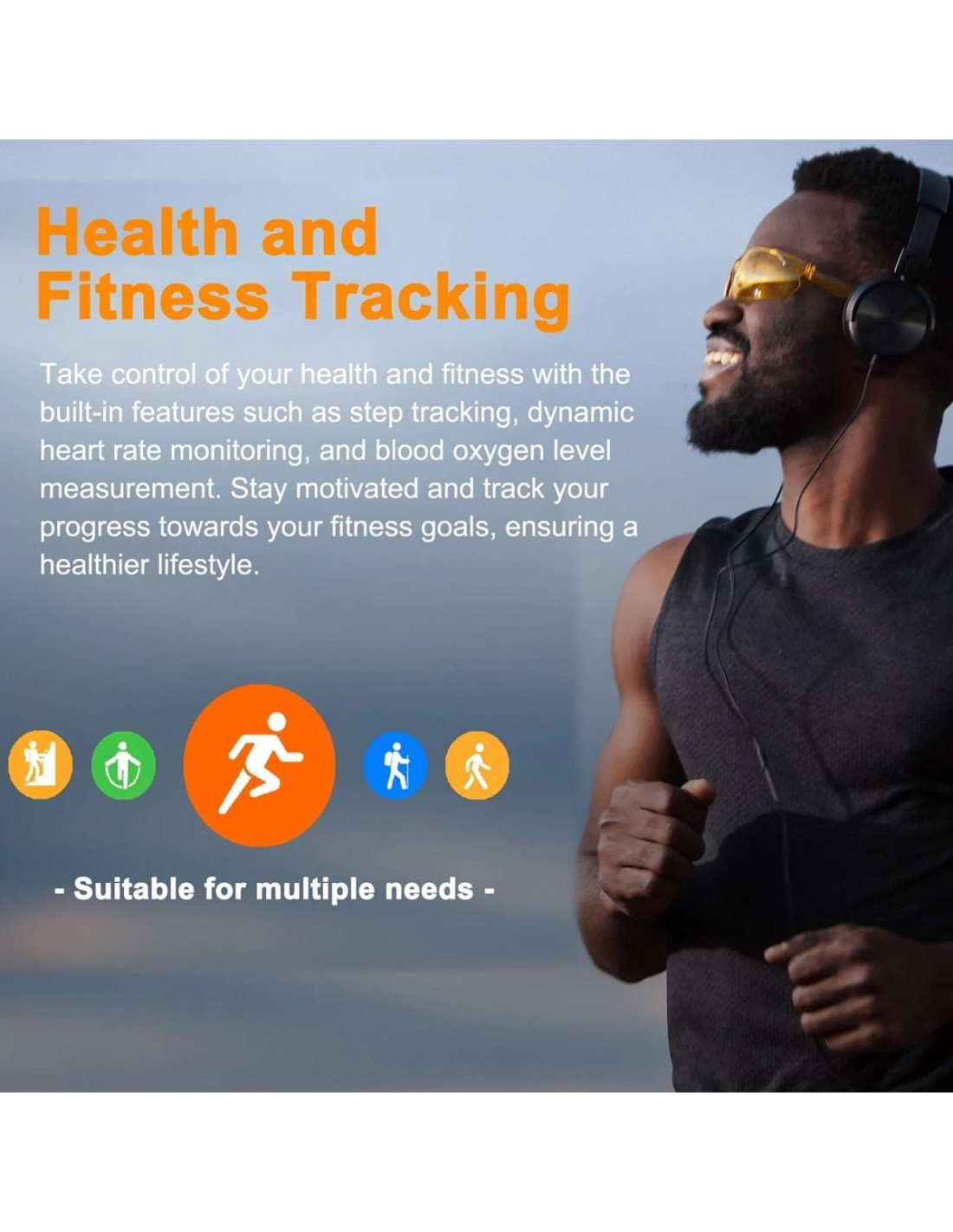- [Rastreador de actividad multifuncional] Senderismo, caminar, escalar montañas y otros modos deportivos te ayudan a dominar siempre los datos deportivos para proteger tu salud. Diversos deportes te llevan a descubrir diferentes paisajes en el camino. Algoritmo inteligente de frecuencia cardíaca. Sensor de alta precisión HX3918 soporta frecuencia cardíaca dinámica, verdadero oxígeno en sangre, pueden monitorear y recordarte tu frecuencia cardíaca y oxígeno en sangre de manera rápida y precisa. Te permite entender tu condición física y disfrutar de una vida más saludable.