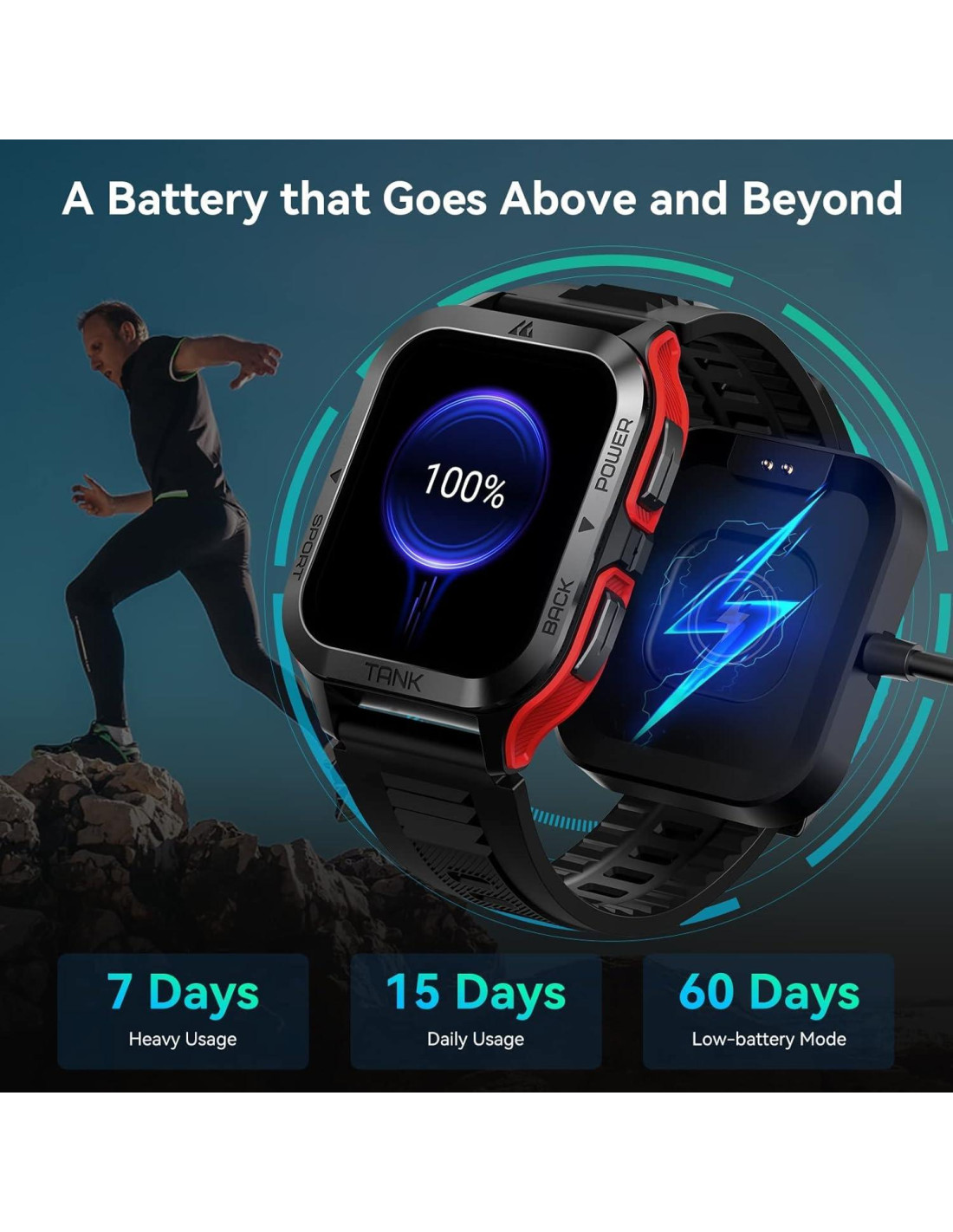 - VIDA ÚTIL DE BATERÍA SUPERIOR A 60 DÍAS - El AMAZTIM M2 está equipado con una batería de 100% de cobalto puro (grado militar) que asegura un rendimiento y longevidad óptimos, el doble que el de los relojes inteligentes convencionales. Al mismo tiempo, se adopta un algoritmo de ahorro de energía superpotente que rompe la industria para minimizar el consumo de energía, suficiente para durar hasta 2 semanas con un uso normal, y puede continuar usando el modo deportivo, medición del índice de salud y otras funciones durante más de 60 días en modo de ahorro de energía.