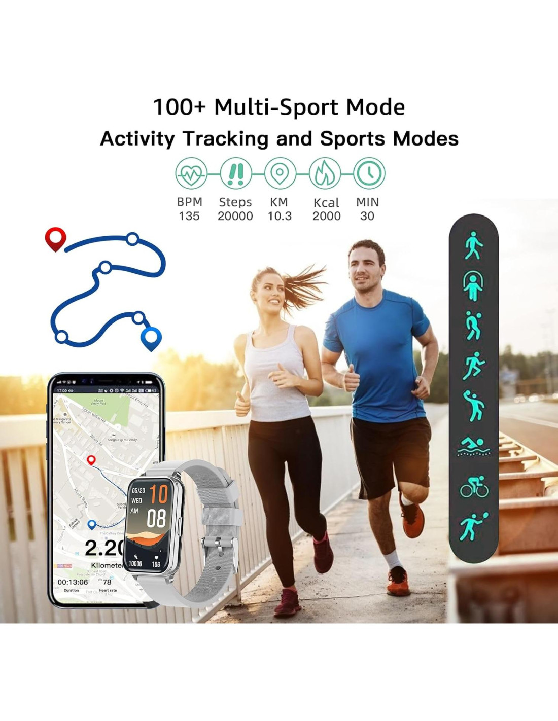 - [Amplia Conectividad] El reloj inteligente fitness tracker soporta teléfonos inteligentes con Android 5.0 o superior y iOS 8.0 o superior, incluyendo iPhone, Samsung, teléfonos Google, teléfonos LG, Pixel y otros teléfonos inteligentes de marca en el mercado.