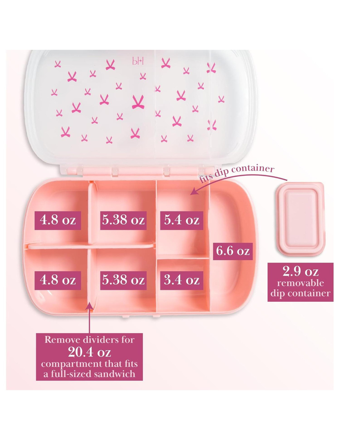 - Componentes incluidos: Cajas de Snack Estilo Bento en Paquete de 2, Estampado de Lazo Rosa