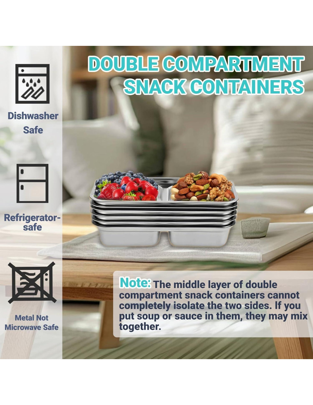 - Diseño de Doble Compartimento: Estos contenedores de snack de doble compartimento cuentan con 2 compartimentos para almacenar diferentes snacks por separado, mientras que también previenen eficazmente la mezcla de sabores.