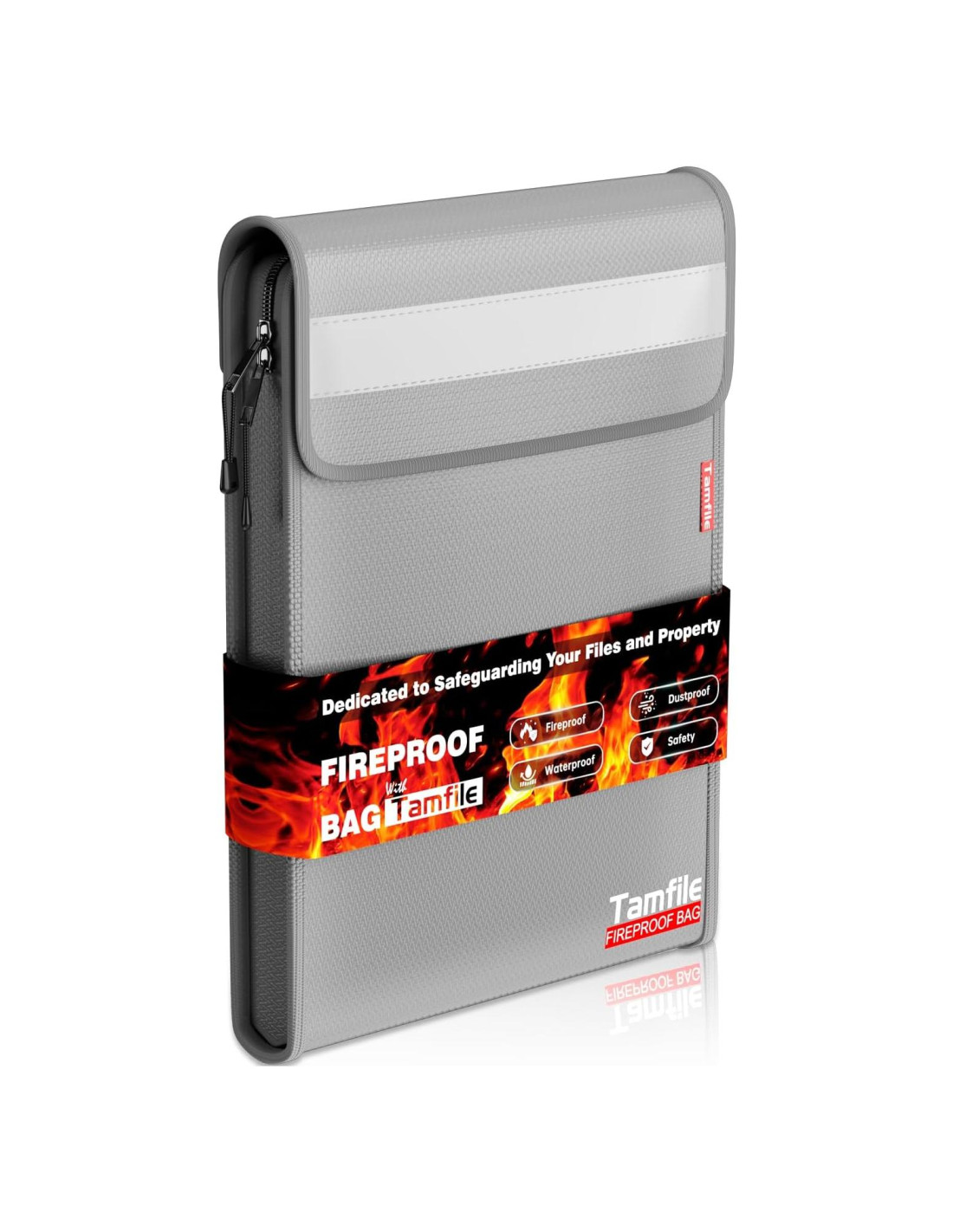- [Certificación de Prueba de Quema UL94 VTM-0] Bolsa de documentos ignífuga Tamfile, no pica para uso externo, calidad estable, tela de fibra de vidrio retardante de llama en el exterior, material impermeable y resistente al calor en el interior, con costuras ignífugas, diseñada y producida recientemente, solo para proteger la seguridad de su propiedad, pasó la prueba de quema UL-94 VTM-0. Bolsa de almacenamiento protectora impermeable e ignífuga de doble bolsillo, adecuada para tamaño A4 A5 legal, efectivo, bienes y documentos legales.