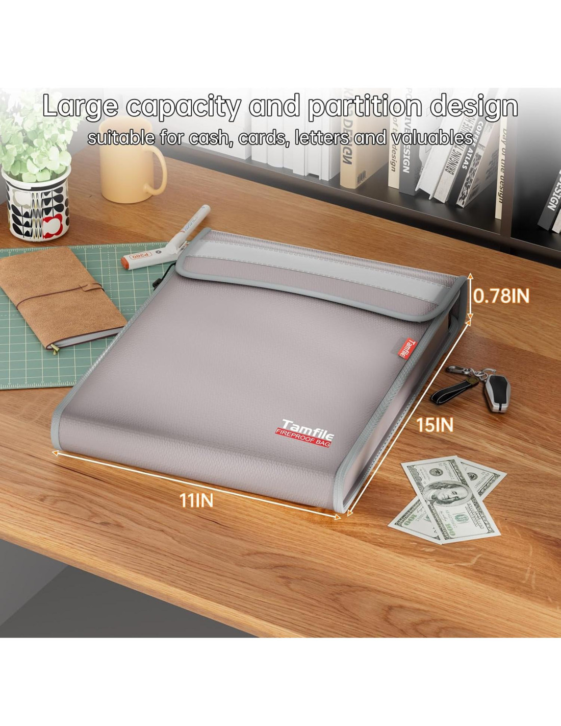 - [Gran capacidad, satisfaciendo completamente sus necesidades de almacenamiento seguro] Bolsa de documentos ignífuga e impermeable de 15 x 11 pulgadas (38.1 cm x 27.9 cm), con diseño de partición de rejilla incorporado en el bolsillo principal, le permite organizar y almacenar artículos de manera más detallada, con un enorme potencial de almacenamiento. Segura y plegable, duradera y resistente al desgaste, con un cordón para facilitar el transporte, puede combinarse con una caja de documentos ignífuga, más segura y adecuada para oficina, hogar y otros escenarios.