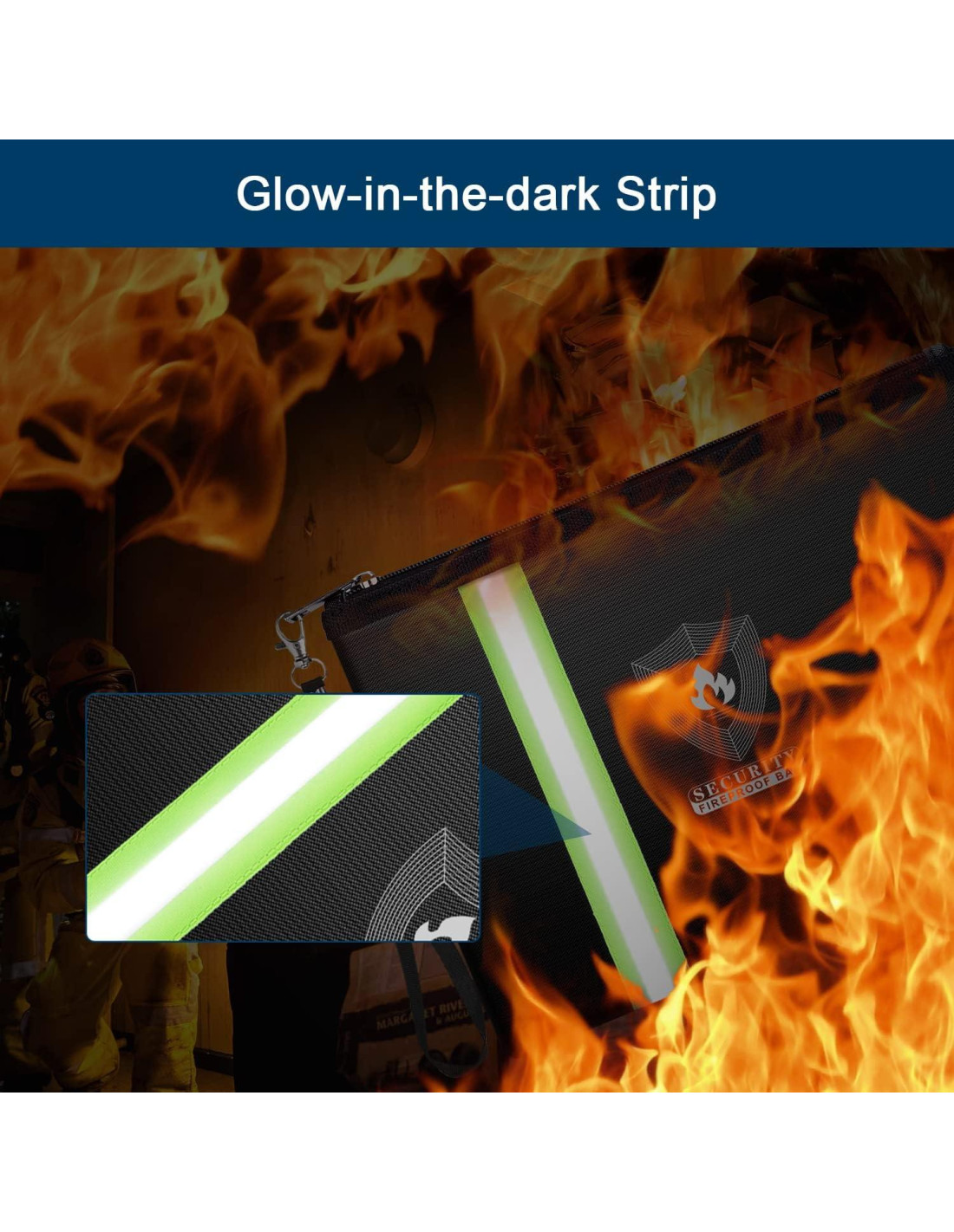 - MEJORADA - CORREA REFLECTANTE NOCTURNA - RÁPIDO AGARRAR Y LLEVAR: Esta bolsa a prueba de fuego está diseñada con una correa reflectante nocturna altamente visible, por lo que es perfecta para agarrar y llevar rápidamente en caso de emergencia. Con la cinta reflectante nocturna especialmente diseñada, puedes encontrar rápidamente nuestra bolsa a prueba de fuego incluso de noche.