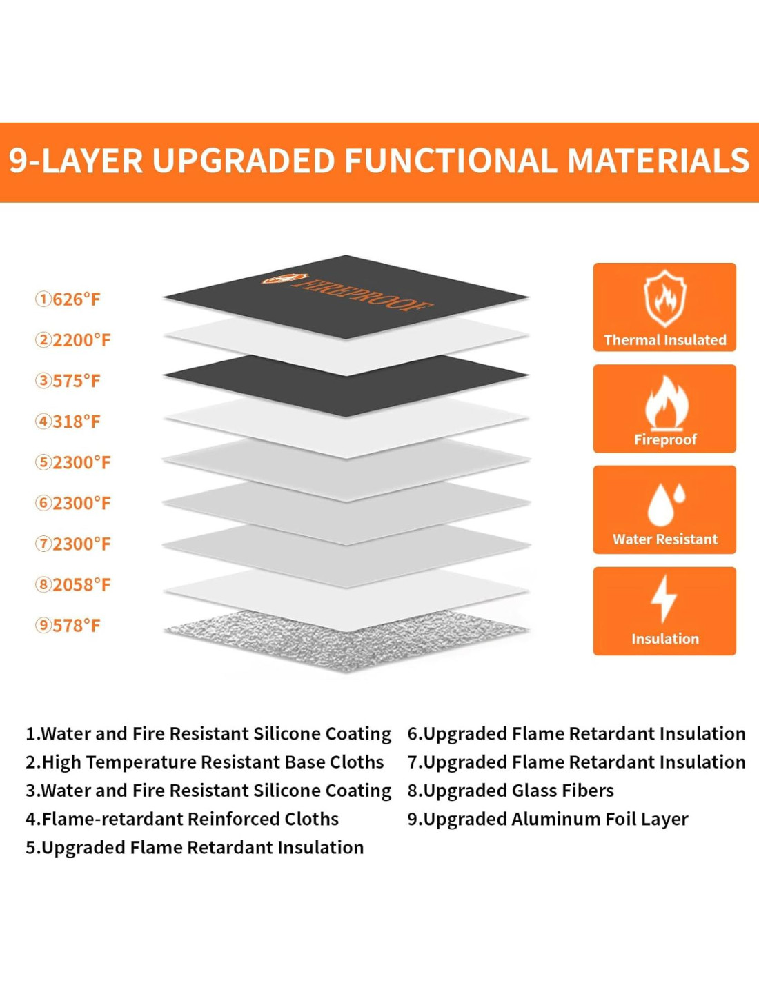 - ESTRUCTURA ÚNICA DE DECAYO TÉRMICO: Gracias a las 9 capas mejoradas de materiales funcionales con aislamiento térmico, la bolsa de documentos a prueba de fuego y agua puede soportar altas temperaturas de hasta 6200F (3432C), y el diseño anidado único permite que la bolsa a prueba de fuego tenga espacio independiente entre las capas de materiales, de modo que la transferencia de calor de los diferentes medios de contacto no directo se debilite constantemente, bloqueando la transferencia de calor. La caja a prueba de fuego te da suficiente tiempo para salvar tus bienes valiosos del fuego.