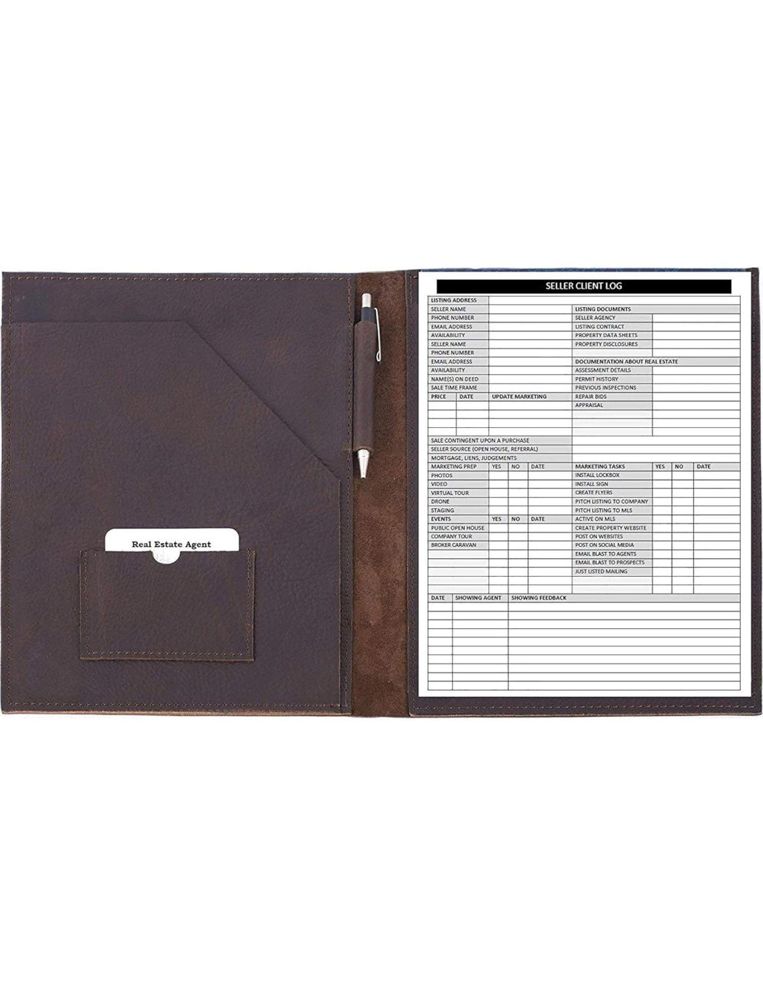 - Suministros para Agentes Inmobiliarios. Un registro de clientes vendedores para agentes inmobiliarios ocupados que desean proyectar profesionalismo. Suministros inmobiliarios que todo agente debe tener para mantenerse organizado. El negocio de los agentes inmobiliarios es agitado y a menudo impredecible, así que simplifica manteniendo tus esfuerzos de marketing registrados y organizados. Este formulario de una sola página ofrece esfuerzos clave de marketing y detalles de la propiedad que pueden ser útiles. Detalles de venta contingente, inspecciones de registro y detalles de evaluación.