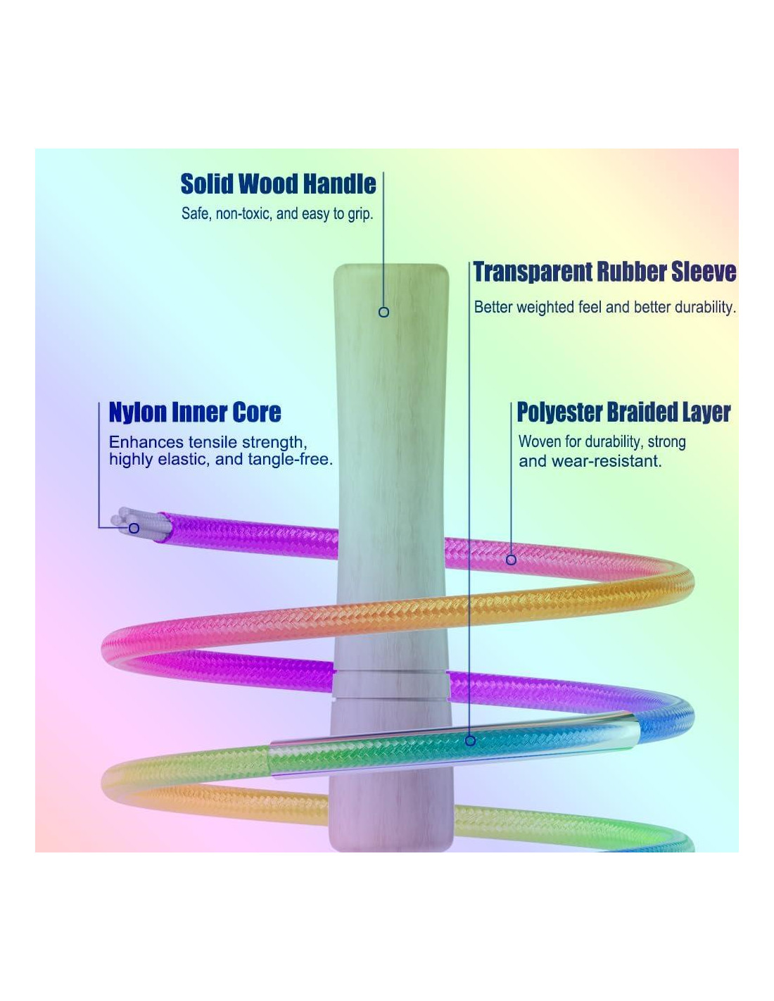 - [Alta Calidad y Seguridad] Nuestra cuerda de salto de colores arcoíris para niños está hecha de una cuerda de nylon trenzada duradera de 6mm, asegurando que sea resistente y duradera. Los mangos de madera natural están diseñados ergonómicamente, proporcionando un agarre cómodo para manos pequeñas.