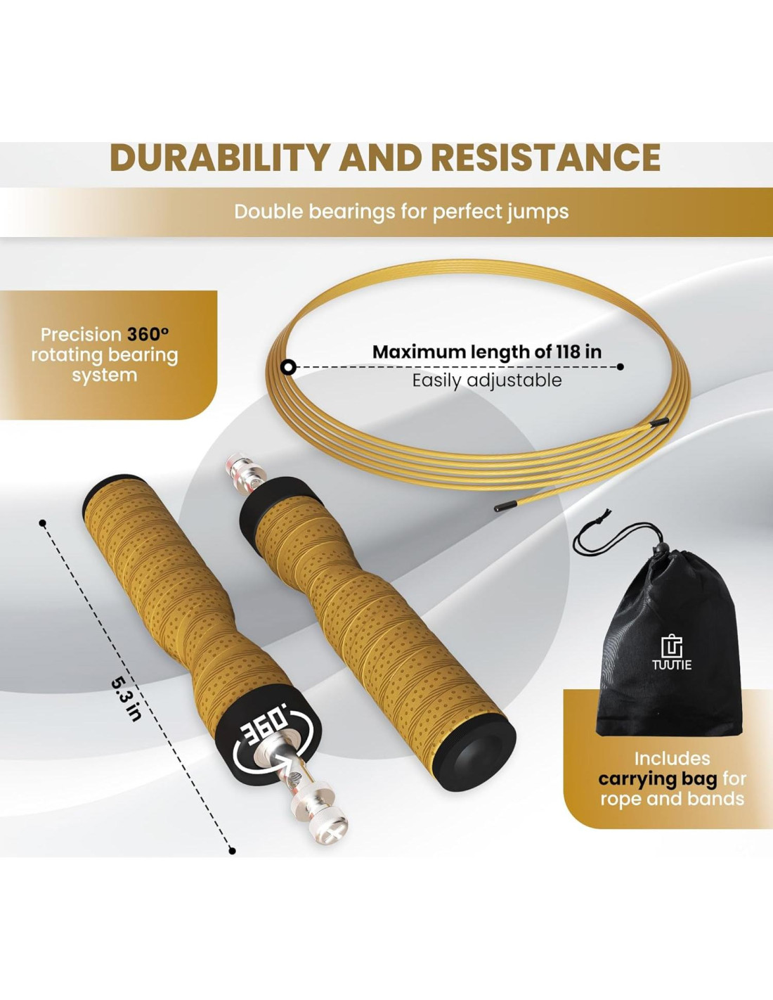 - CABLES DE ALTA CALIDAD: Construidos con cables de acero trenzado duraderos que pueden soportar un uso intensivo y entrenamientos intensos sin enredarse ni romperse. Perfecto para Doble Saltos.