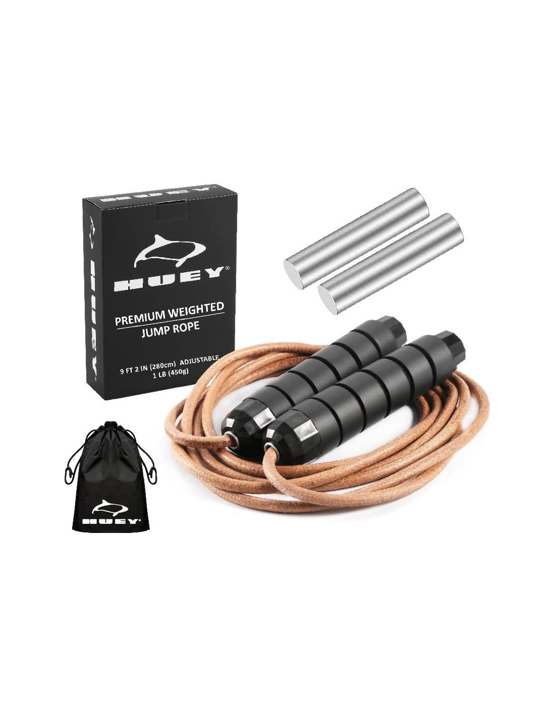 - CONSTRUIDA PARA DURAR - Hecha de 100% CUERO AUTÉNTICO, la cuerda de salto HUEY Sport está diseñada para soportar un uso INTENSIVO. Los empuñaduras de espuma moldeadas personalizadas vienen con rodamientos de bolas de supervelocidad que aseguran una rotación suave, sin esfuerzo y uniforme.