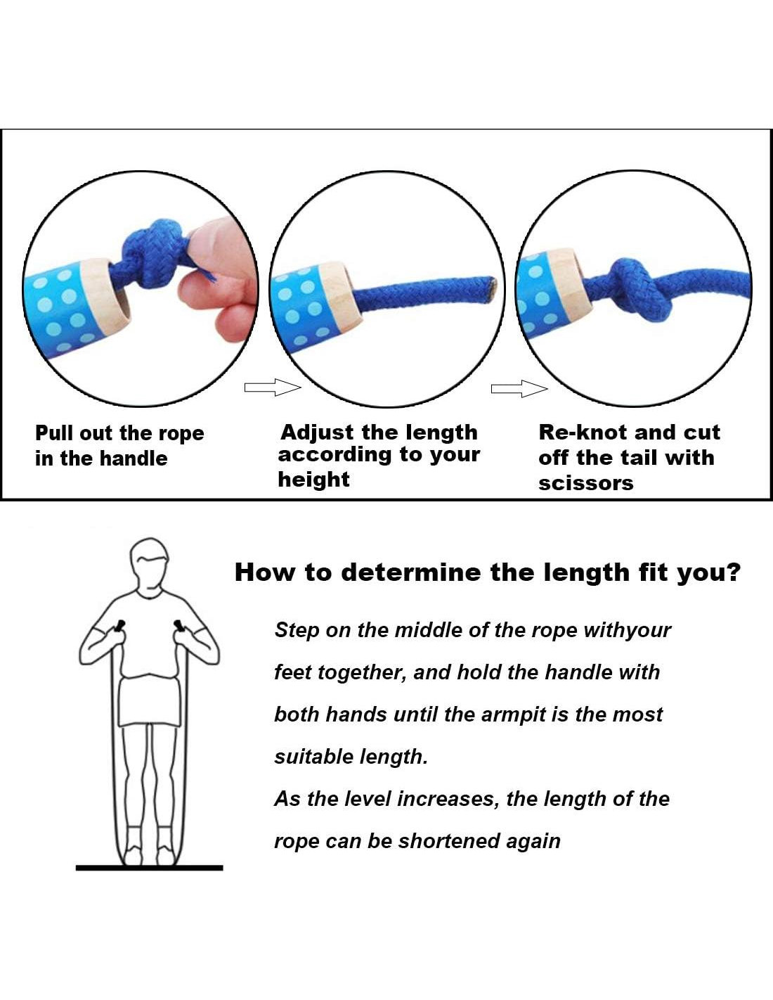 - Material Premium - Hecho de cuerda de algodón duradera y suave y mango de madera de superficie lisa, pintado con pintura a base de agua ecológica, esta cuerda de saltar es saludable y segura para los niños