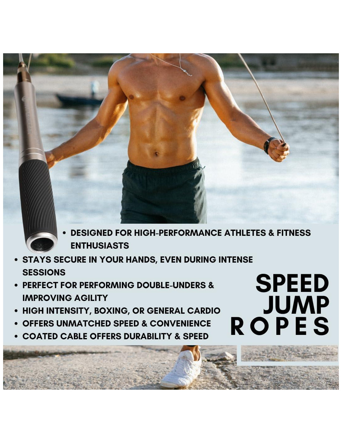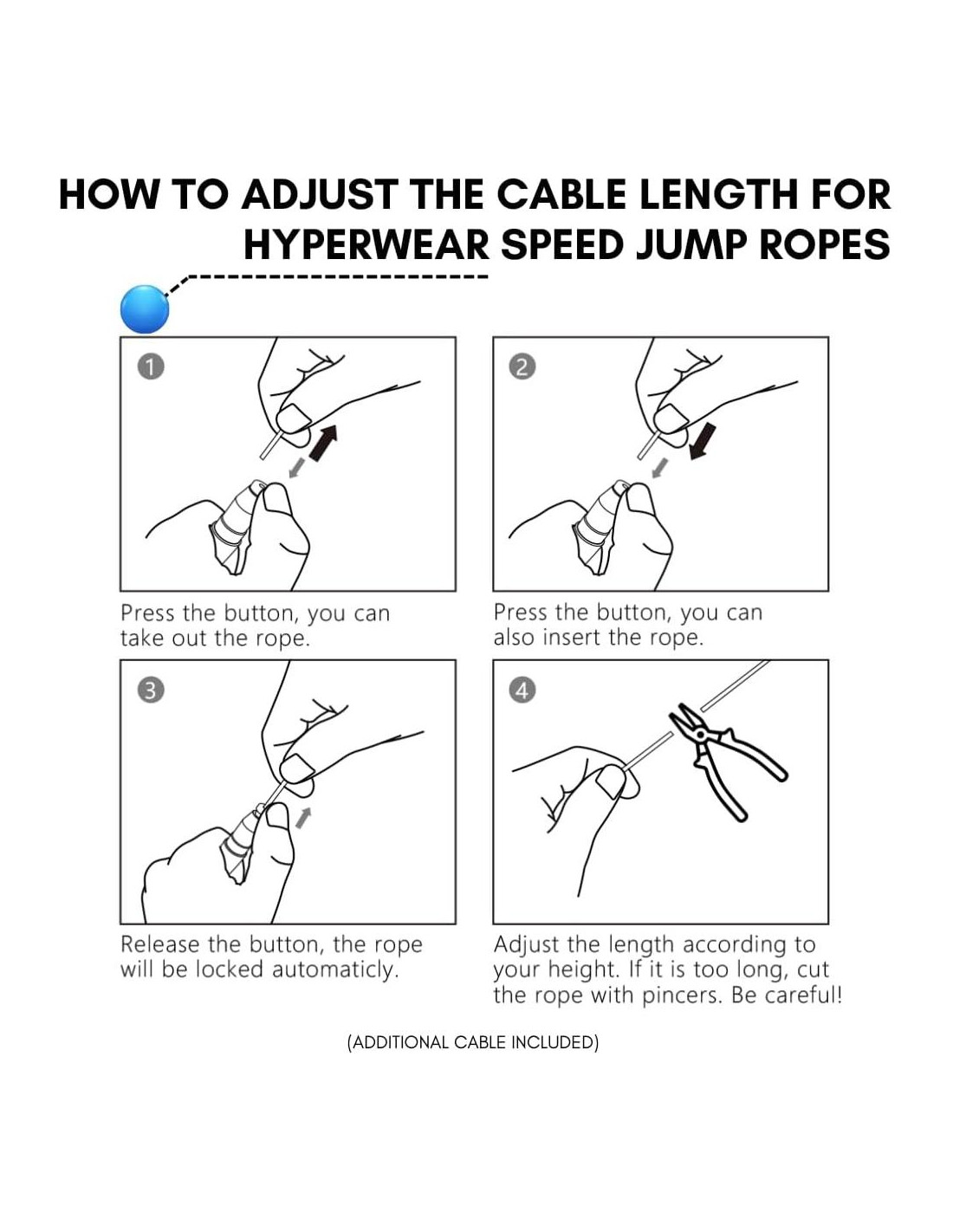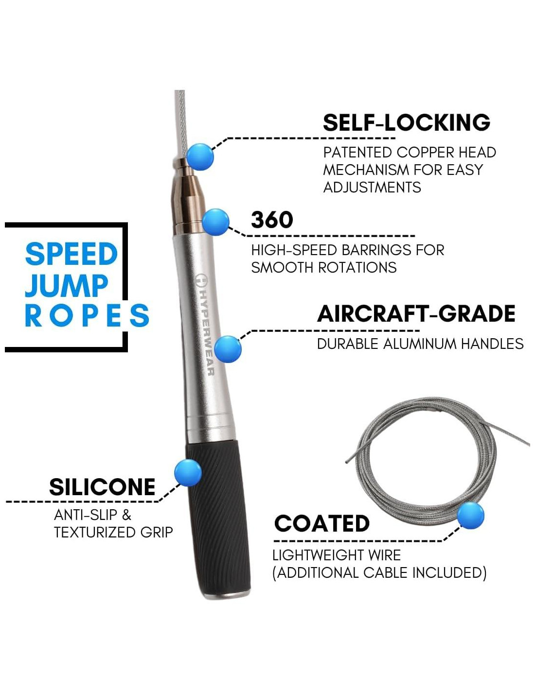 La Cuerda de Salto Ajustable Hyperwear está diseñada para atletas de alto rendimiento y entusiastas del fitness. Ya sea para CrossFit, boxeo o cardio general, esta cuerda ofrece una velocidad y conveniencia inigualables. Ajusta la longitud de la cuerda rápidamente con el mecanismo de cabeza de cobre autocierre patentado, haciéndola adecuada para usuarios de todas las alturas. Los rodamientos de alta velocidad aseguran rotaciones suaves y sin enredos, perfectas para realizar dobles saltos y mejorar la agilidad. Fabricada con mangos de aluminio de grado aeronáutico recubiertos de silicona antideslizante, la cuerda se mantiene segura en tus manos, incluso durante sesiones intensas. El cable ligero recubierto ofrece durabilidad y velocidad, reduciendo la resistencia en cualquier superficie. Como bonificación, cada cuerda de salto incluye un cable de repuesto, asegurando entrenamientos ininterrumpidos.