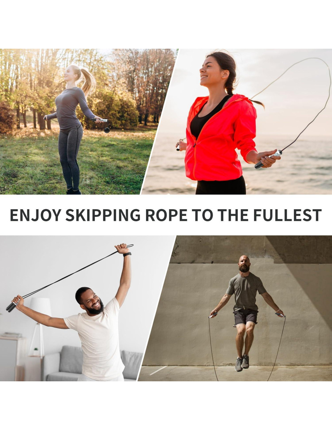 - [Cuerda de velocidad sin enredos y longitud ajustable] Experimenta saltos suaves y sin esfuerzo con rodamientos de bolas de alto rendimiento que previenen torsiones y enredos. La cuerda mide 280 cm (110 pulgadas) y es fácilmente ajustable, perfecta para compartir con la familia.