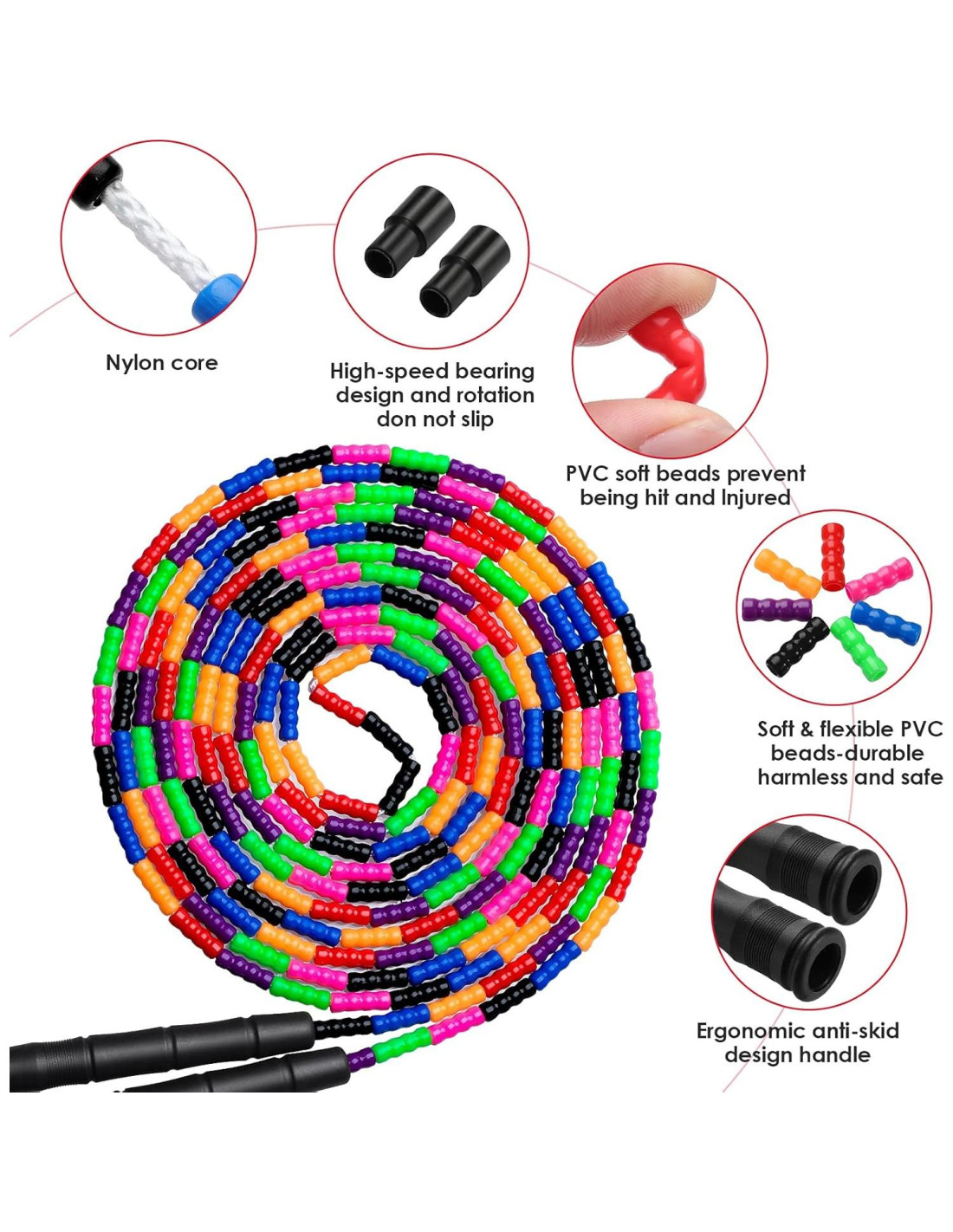 - [Excelente Material] Las suaves perlas de PVC de colores son resistentes a los impactos y al desgaste; el mango de PP grueso es más resistente a caídas; el núcleo de la cuerda utiliza cuerda de nylon de alta densidad, con excelente resistencia al desgaste.