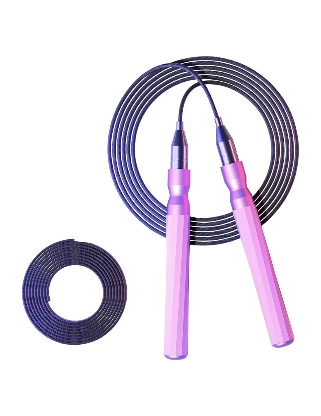 - Cuerda de saltar de alta velocidad: Grado premium, rodamientos de bolas de 360 grados, el mango diseñado ergonómicamente está incrustado con silicona amigable con la piel para ofrecer un agarre óptimo y evitar deslizamientos y corrosión por sudor.