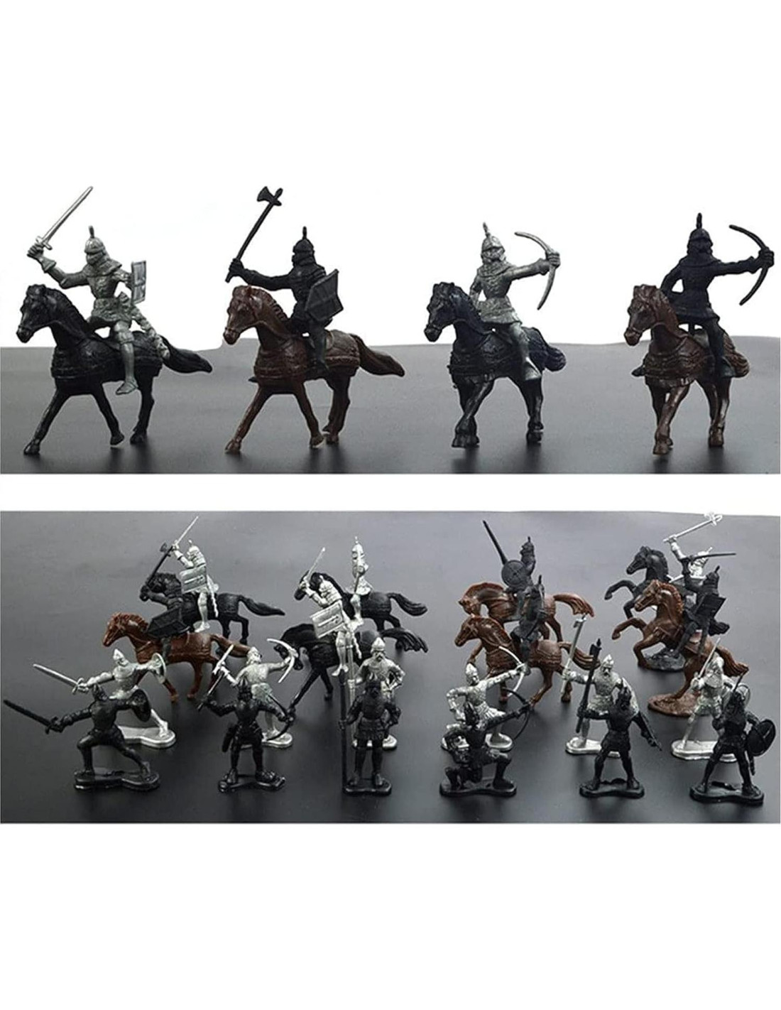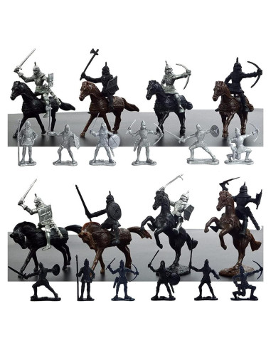 Buena calidad y detalle. Increíbles juegos de guerra antiguos con miniaturas. Especificaciones Material: Plástico Color: Negro y Gris (aleatorio) Altura de los Soldados: aproximadamente 5 a 7 cm (1.97 a 2.75 pulgadas) Patrón: Caballeros Medievales Guerreros Caballos Característica: - Mejora la capacidad organizativa y de observación de los niños; - Un artículo perfecto para colección de juguetes; - Un regalo fantástico para los Niños; Cantidad: 28 piezas / Set (incluye 20 Soldados y 8 Caballos) Observación: Por favor, cuida a los niños para evitar que coman o se lastimen. Contenido del Paquete: Recibirás 12 soldados, 8 caballos, 8 jinetes, un total de 28 piezas de juguetes de ejército en un paquete. Hay un agujero en la silla, los jinetes y los caballos se pueden ensamblar juntos. El paquete incluye 28 x Modelos de Figuras de Caballeros