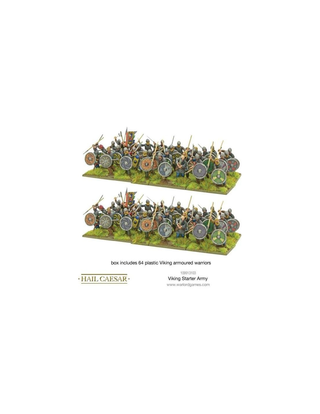 ¡Expande a nuevas tierras y saquea a través de Britania con un ejército vikingo completo! Este set inicial incluye: 1 warlord vikingo exclusivo, 4 berserkers de metal, 64 hirdman de plástico, 64 bondi de plástico, 4 hojas de calcomanías para escudos vikingos. Modelos suministrados sin ensamblar y sin pintar.