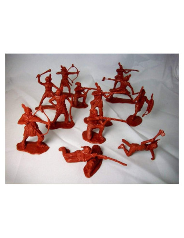 - Indios Mohawk 12 figuras en 10 poses hechas de un plástico suave color marrón rojizo