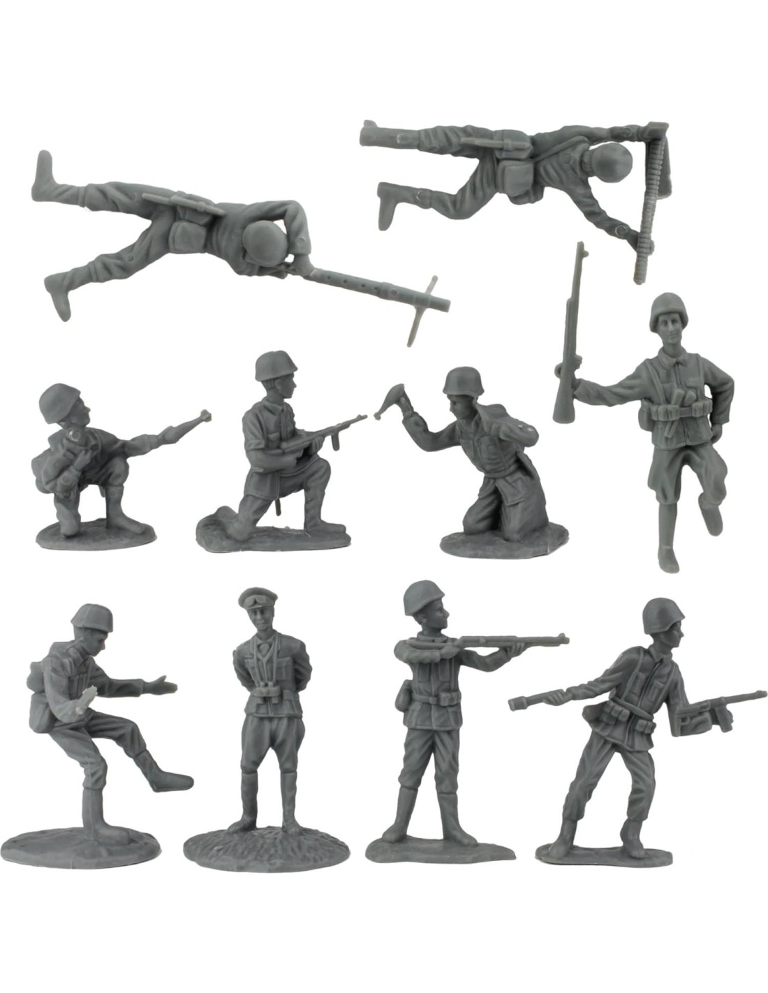 De la serie de coleccionistas AMERICAN HERO COLLECTOR de BMC Toys, parte de la mayor invasión en la historia militar: El juego de hombres de plástico del ejército de 40 piezas de D-DAY PLAYA DE UTAH incluye 14 GIs americanos en verde oliva, 10 soldados alemanes en gris, 2 morteros, 12 erizos checos, búnker alemán con artillería Flak 37 montada, y una embarcación de desembarco Higgins LCVP. Este conjunto presenta figuras de personajes del Brigadier General Teddy Roosevelt Jr., Sargento Harrison Summers, Mariscal de Campo Erwin Rommel, y una rampa funcional en la embarcación de desembarco. Todas las piezas son de aproximadamente escala 1:32 y están hechas de plástico polipropileno bastante rígido y muy duradero con detalle medio y muy poco desecho. Las figuras miden hasta 2.45 pulgadas (6.22 cm) de altura. El búnker mide 7.62 x 2.75 x 3.1 pulgadas (19.31 x 6.99 x 7.87 cm) de altura, sin incluir el cañón que mide 5 pulgadas (12.7 cm) de largo. La embarcación de desembarco mide 12.8 x 3.9 x 3.25 pulgadas (32.51 x 9.91 x 8.26 cm) de altura. BMC Toys fue fundada por Bill McMaster en 1991 y se especializa en producir figuras de hombres de plástico del ejército históricamente precisas y juegos en el estilo clásico de los años 1950 y 1960. Empaquetado en una caja de tamaño de zapato con y recomendado para edades de 5 años en adelante. La edición de 2017 incluye todas las nuevas hojas de pegatinas y arte de caja.