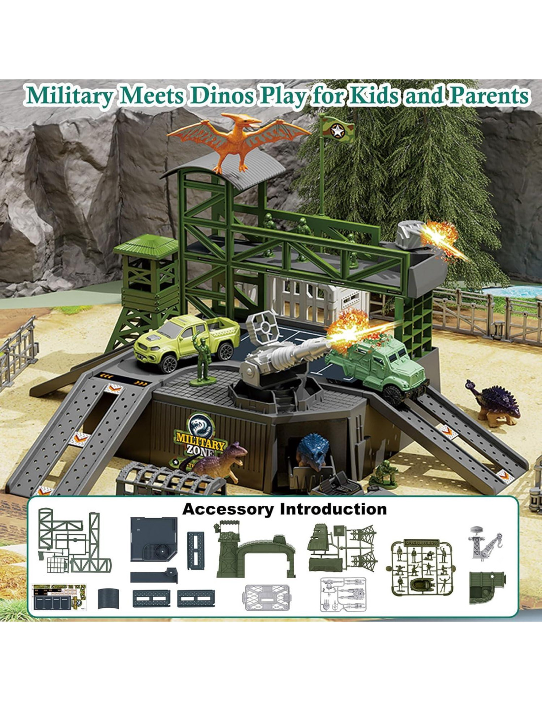 - Combinación de Juguetes Militares con Juguetes de Dinosaurios: 56 piezas de juguetes militares de hombres de ejército incluyen figuras de acción, equipo militar, juguete de dinosaurio; Las figuras de soldados, incluyendo comandantes y combatientes, coche blindado, helicópteros, jeeps, cañón, tiendas, cerca, camiones