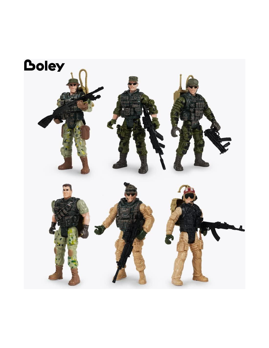 - ¿QUÉ HAY DENTRO?: El fantástico set del ejército de Boley incluye seis figuras de acción de soldados, armas de juguete y accesorios militares para un juego divertido.