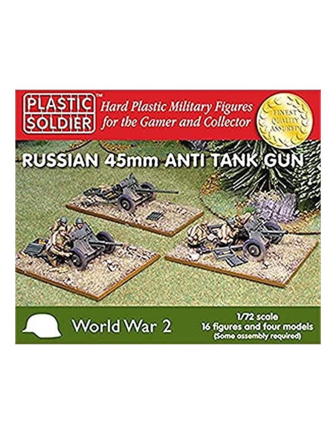 Este kit contiene 4 cañones y 16 figuras de tripulación. Cada sprue de cañón tiene opciones para construir ya sea el cañón antitanque 45mm M1937, el cañón antitanque 45mm M1942 o el cañón de infantería 76mm M1943. Las miniaturas se suministran sin pintar y puede ser necesario ensamblarlas.