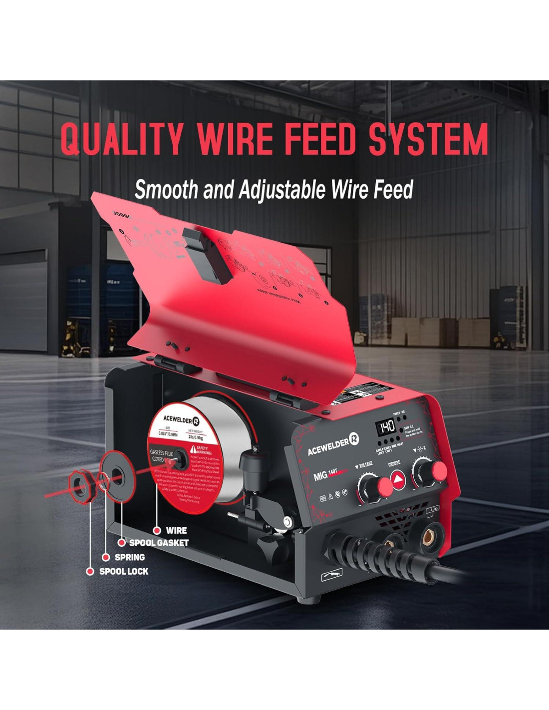 - Máquina potente y segura: Esta máquina de soldadura de 140A puede soldar placas de hasta 4.0mm. Adecuada para alambre de soldadura de núcleo de flux de .030" & .035" & 0.040". Lo suficientemente grande para manejar rollos de alambre de 2.2 libras (0.99 kg). También equipada con sistema de sobrecarga y sobrecalentamiento, siéntase libre de usarla, es muy segura.