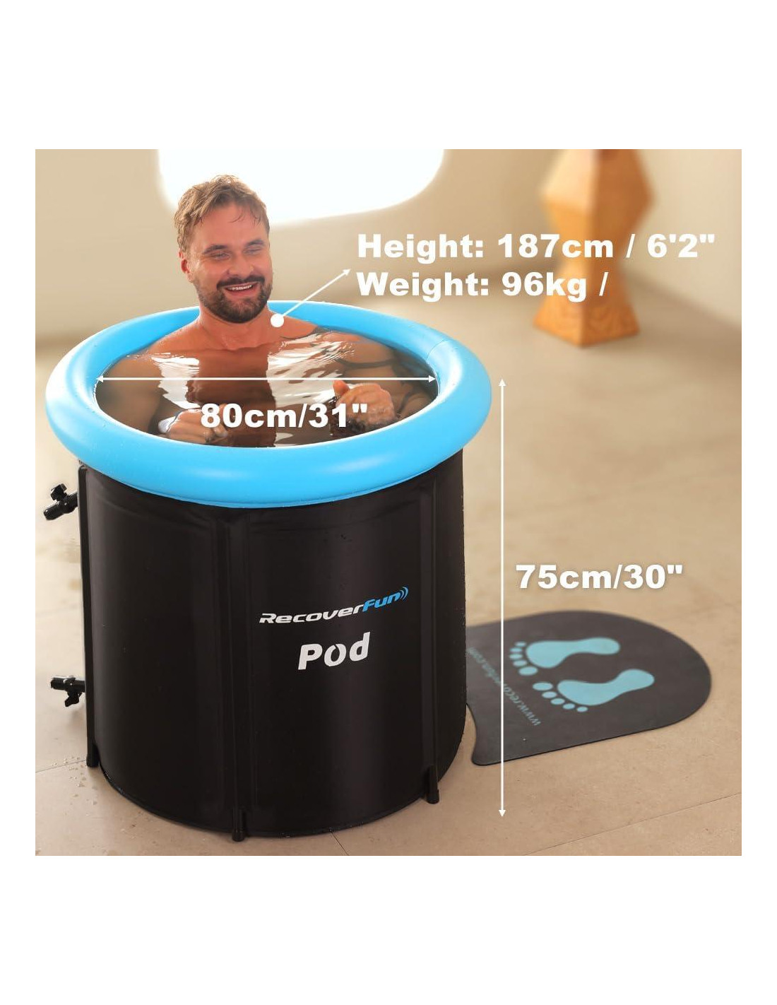 Tina de Baño de Hielo RECOVERFUN - la solución definitiva para una rápida recuperación post-entrenamiento. Con una robusta estructura aislante de 6 capas, soporte mejorado para la cabeza, compatibilidad con la mayoría de los enfriadores, configuración rápida y portabilidad, ofrece terapia fría efectiva en cualquier lugar. Profesionales y entusiastas por igual pueden disfrutar de una experiencia de recuperación cómoda y conveniente, liberándose de las limitaciones de espacio y ubicación. Mejora tu rutina de recuperación con la tina de baño de hielo RECOVERFUN.