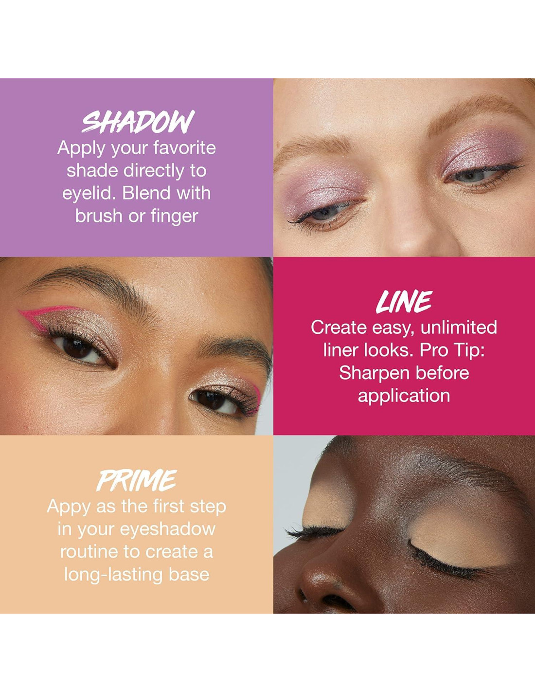 Conoce nuestra primera sombra, delineador y primer todo en uno! Esta sombra de ojos de larga duración ofrece hasta 24 horas de rendimiento de color. Hecha con pigmentos de poder tatuaje, cada lápiz de sombra de ojos ofrece un color resistente a pliegues que puede seguir el ritmo de tu día. Con un sacapuntas incorporado para precisión, estos lápices de uso múltiple sombrean, delinean y preparan. Los lápices de sombra Color Tattoo tienen lo que necesitas para una aplicación sin complicaciones y un color audaz y duradero! Ahora disponible en 10 tonos coloridos: 5 neutros brillantes y 5 tonos mate cremosos.