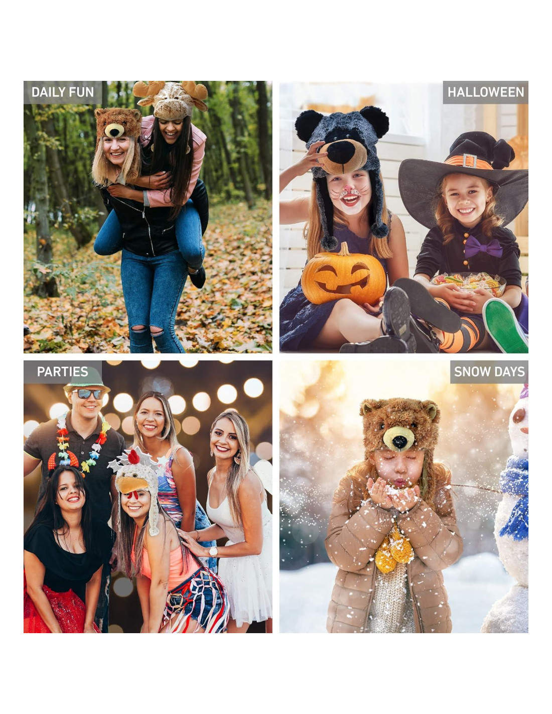 - USO IDEAL PARA EL CONJUNTO DE SOMBREROS DE PELUCHE DE ANIMALES - El Conjunto de Sombreros de Animales Salvajes es perfecto para uso diario durante la temporada de clima frío, días de sombreros locos en la escuela o trabajo, para juegos de simulación, o para disfraces divertidos de Halloween rápidos y fáciles! Los lindos sombreros de novedad son ideales para usar como accesorios de cabeza para juegos de simulación y juegos divertidos. Los suaves sombreros de peluche de animales mantendrán la cabeza de tu pequeño extremadamente cómoda durante todo el día y abrigada en noches frías. Recomendado para todas las edades.