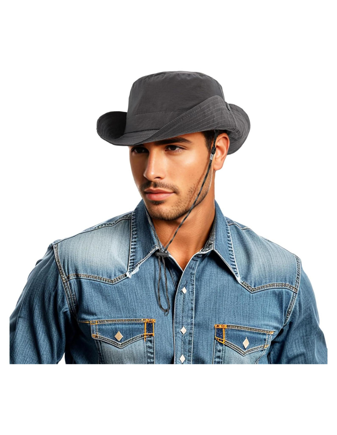 - Aplastable y Portátil: Los sombreros de lluvia occidentales pueden ser doblados en un paquete pequeño, con un gancho para colgar en tu mochila para fácil transporte; El ala mediana puede proporcionar protección solar; Cuerda ajustable para fijar el sombrero para el sol en días ventosos. Ideal para rancho, montar a caballo, pesca en lago, senderismo, golf, jardinería, viaje en flotador, montañismo, camping, viaje a la playa, día de piscina, pasear al perro, investigar, navegar, vacaciones en hawaii, fiestas de rodeo occidental, días de mal cabello, moda urbana