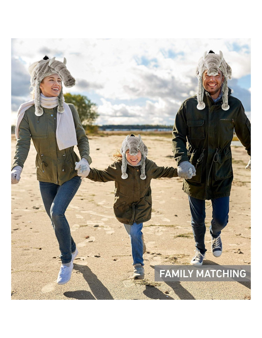 - USO IDEAL PARA EL SOMBRERO DE INVIERNO DE PELUCHE DE ELEFANTE - Los sombreros de animal elefante grises para adultos y niños son perfectos para el uso diario, especialmente en la temporada de invierno. Es una gran adición a tu disfraz de niño elefante o como sombreros de fiesta de animales para Halloween o fiestas de cumpleaños. El lindo gorro de novedad de elefante con orejeras hace un regalo divertido de elefante para aquellos que aman los animales de safari. Un genial sombrero de peluche de elefante para mantenerte cálido y cómodo.