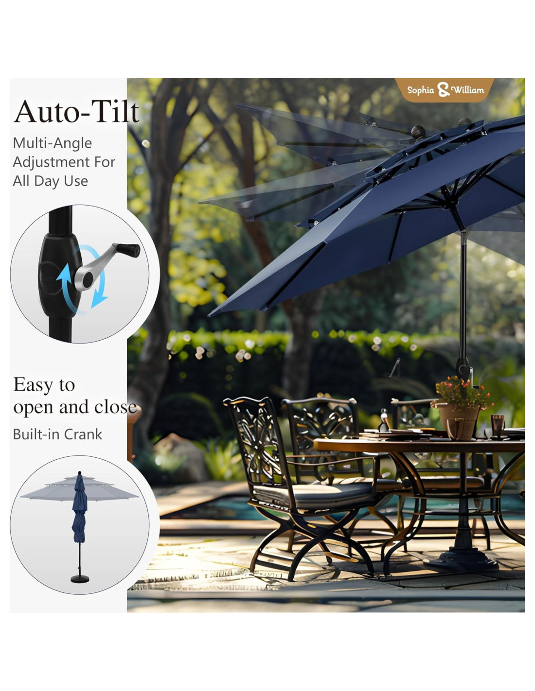 - Paraguas de Patio con Auto-inclinación de Fácil Operación - Fácil de abrir y cerrar con la manivela. Viene con función de auto-inclinación, solo continúa girando cuando el paraguas está completamente abierto para inclinarlo. Inclina el paraguas según sea necesario para maximizar la sombra para tu disfrute al aire libre