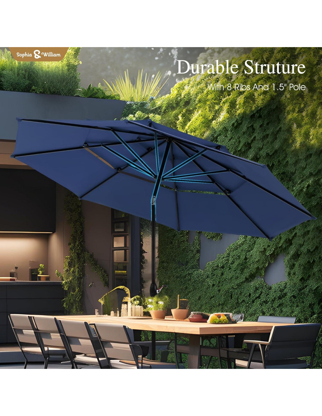 - Diseño Doble Ventilado - La parte superior de 3 niveles añade moda y elegancia a tu patio mientras proporciona mejor circulación de aire. El aire caliente o el viento fluirán rápidamente a través de las dobles ventilaciones, lo que hace que el paraguas sea más estable y más fresco por debajo en verano