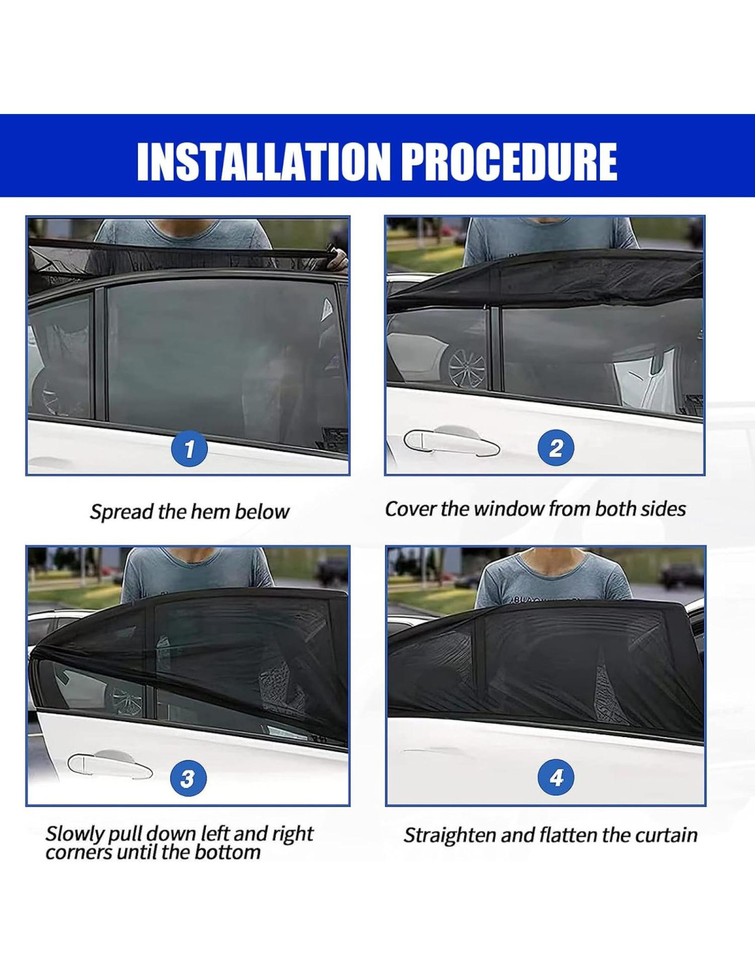 - Diseño de Doble Capa: Las sombrillas para el coche están diseñadas para cubrir todo el marco exterior de la ventana sin la ayuda de ningún adhesivo, asegurando que se pueda subir/bajar la ventana libremente. La malla de doble capa tiene un buen efecto de protección solar, sombra y protección solar, ventilación y transpirabilidad.