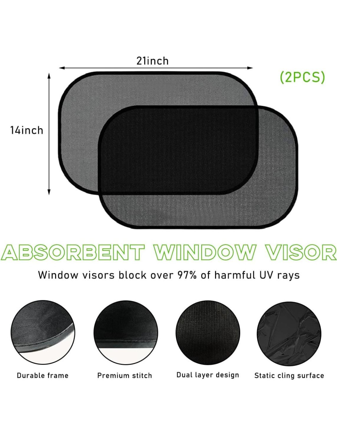 - [Amplia Aplicación] : Recibirá 2 sombrillas de malla. Miden 21"(53.34 cm) x 14"(35.56 cm) y se ajustan bien a las ventanas laterales de autos SUV más grandes, minivans y autos de tamaño completo. Estas sombrillas son accesorios esenciales de verano que brindan protección al interior del auto y son ideales para acampar, lo que las convierte en un gran regalo para los propietarios de autos.