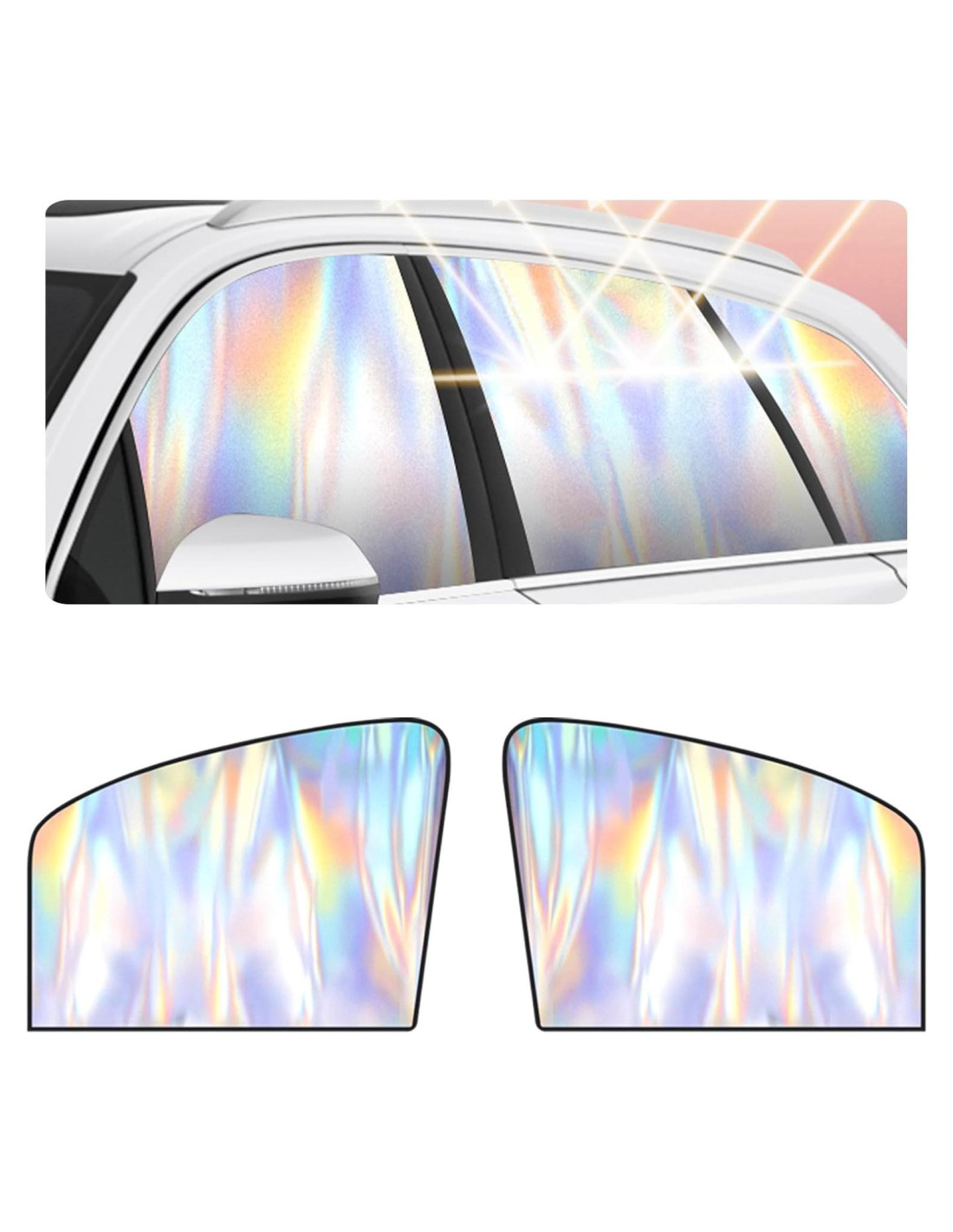 - Protección Solar Doble Cara: Este diseño de cortinas de privacidad para automóvil frontal y trasero es diferente, la capa de laminado holográfico refleja la luz solar, el diseño de la superficie y la buena integración con el interior del automóvil, otra capa de hasta 99.8% de tasa de sombreado, fácil de bloquear la luz