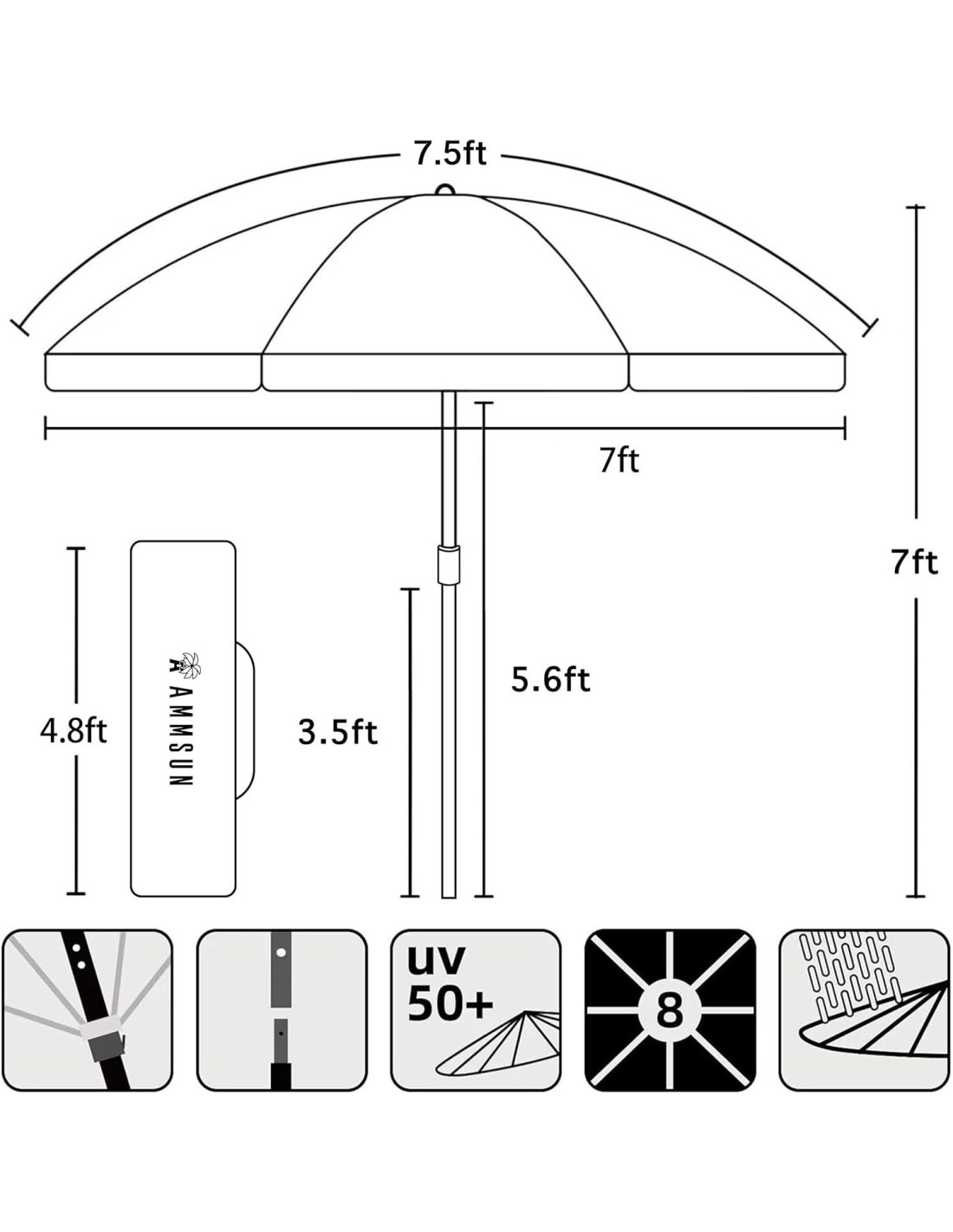 - Dispositivo de Anclaje de Arena Opcional ASIN:B01EHMC9EQ (se vende por separado) es recomendado. El anclaje mantiene el paraguas más seguro en el suelo. Escribe B01EHMC9EQ en la caja de búsqueda para comprar el anclaje de arena recomendado. Este accesorio ayuda a mantener el paraguas anclado de manera segura al suelo, lo que es especialmente útil en áreas con suelo suelto o arenoso.