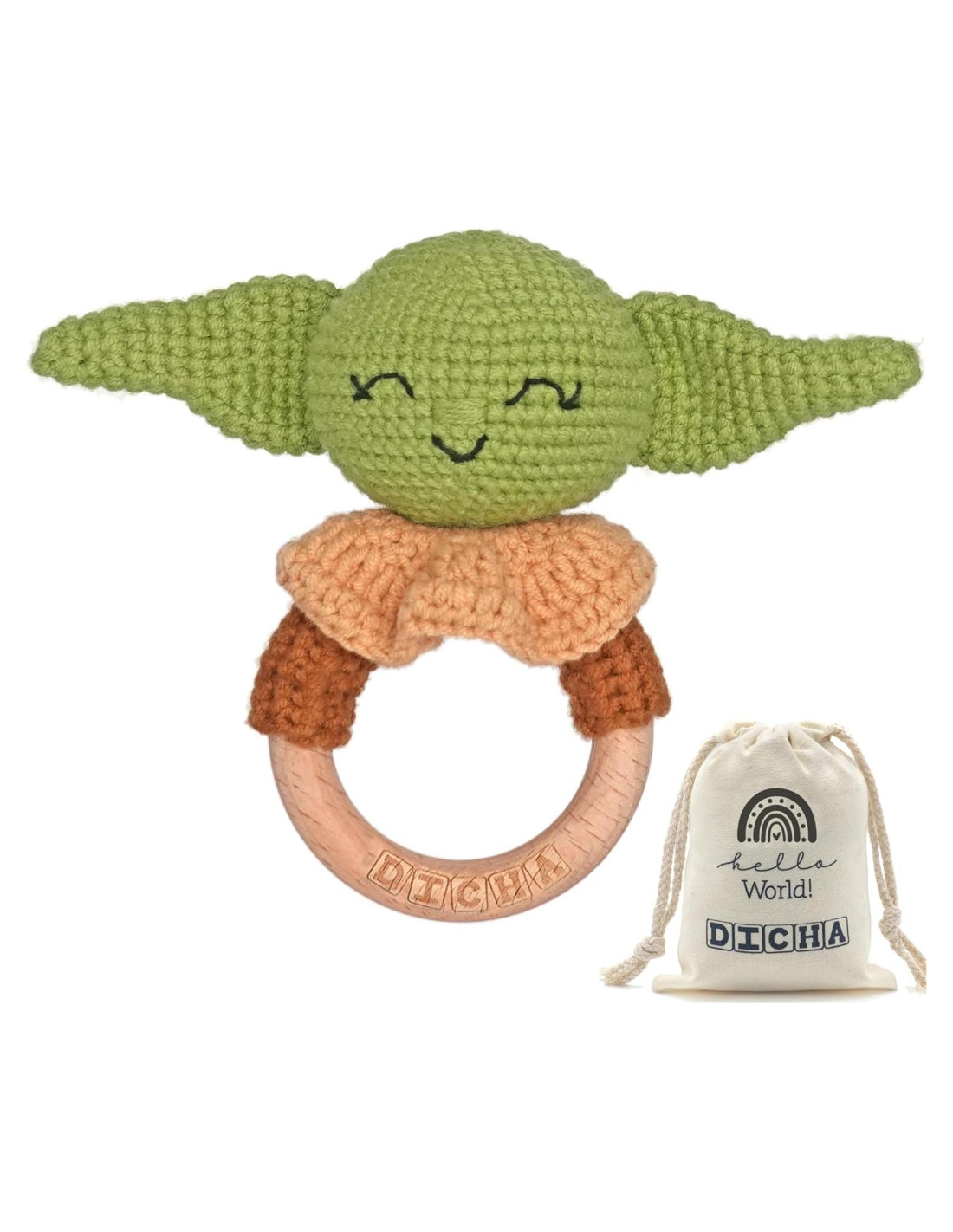 - Ecológico: Hecho de materiales de algodón y haya, este sonajero de ganchillo es una opción perfecta para los padres que priorizan la sostenibilidad y la seguridad.