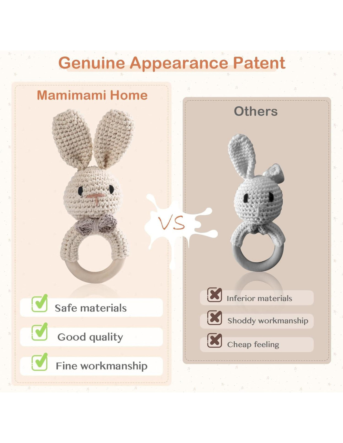 - Apropiado para la Dentición con Patente de Apariencia Genuina: Con su suave relleno de algodón orgánico y su mango de madera suave, nuestro sonajero para bebés es adecuado para bebés en dentición. Además, su diseño único está respaldado por una patente de apariencia genuina, lo que lo convierte en una adición destacada a la colección de juguetes de su bebé. Confíe en nuestro sonajero de conejo de crochet para proporcionar horas de juego seguro y divertido para su pequeño.