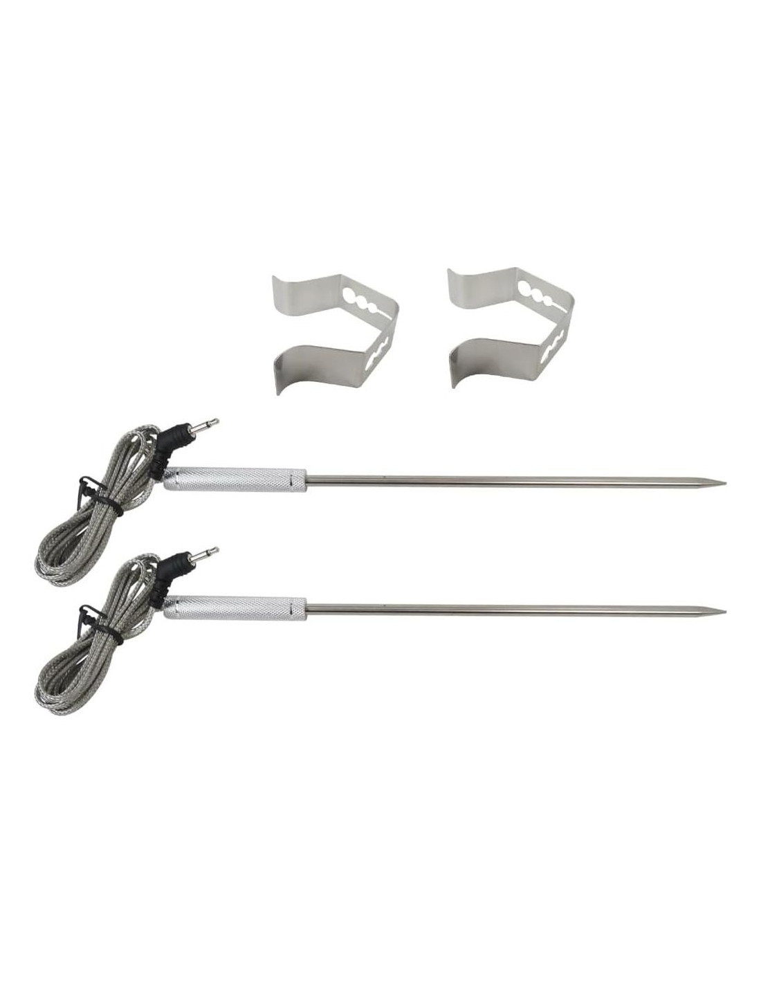 - Las sondas de reemplazo le ayudarán a monitorear la temperatura de su comida, insertadas en la parrilla comienzan a leer inmediatamente la temperatura de la carne, y el clip de acero puede evitar que la sonda toque la rejilla. Rango de detección de temperatura: 32 F a 572 F (0 C a 300 C)