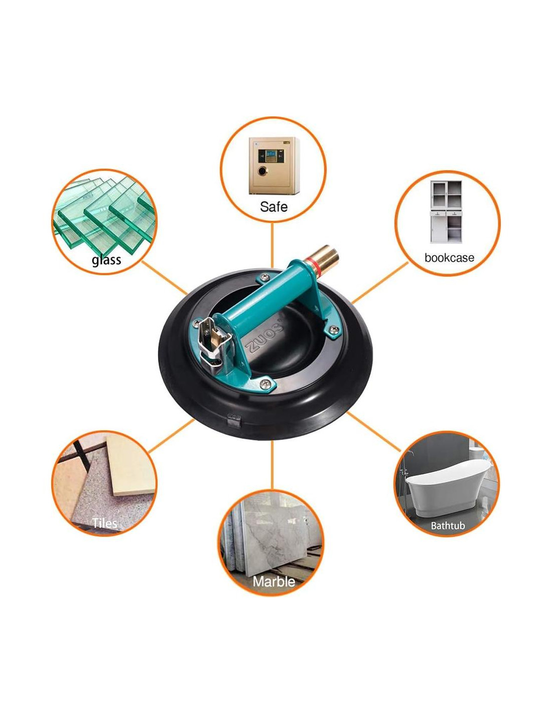 - Esta es una herramienta con mayor capacidad. 9'' de diámetro, ventosas de vacío de metal de mano, rápida sujeción en superficies planas, lisas y no porosas. Excelente para levantar y mover materiales como vidrio grande, azulejos, acuarios, muebles, plásticos, metal, losas de piedra y electrodomésticos.