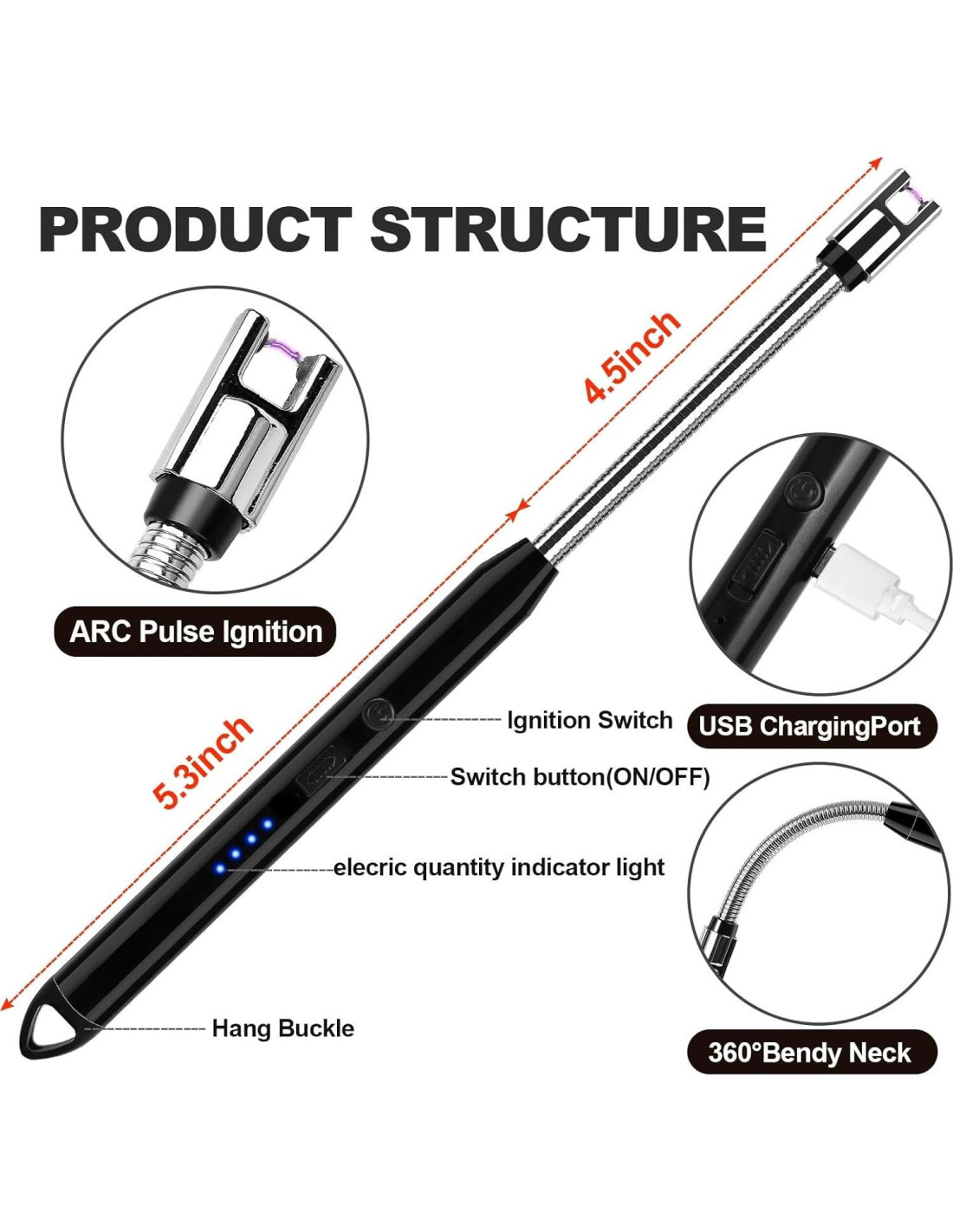 - [Cuello largo y flexible y diseño conveniente] Ya sea que necesites encender una vela, parrilla o fuegos artificiales, este encendedor único con un cuello largo y flexible facilita el acceso incluso a los lugares más difíciles. Di adiós a los dedos quemados y experimenta la conveniencia que ofrece