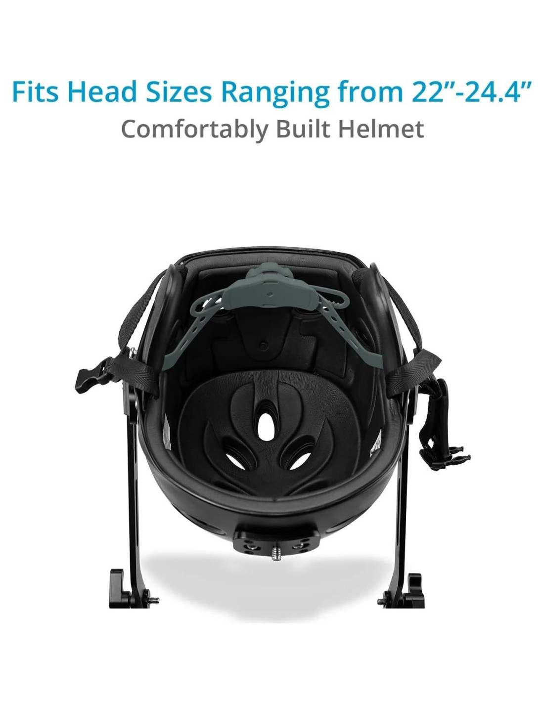 - Ajuste ajustable para comodidad. El casco se adapta a tamaños de cabeza de 22 a 24.4 pulgadas (55.88 a 62.23 cm) con una correa de trinquete para un ajuste seguro y cómodo durante largas grabaciones
