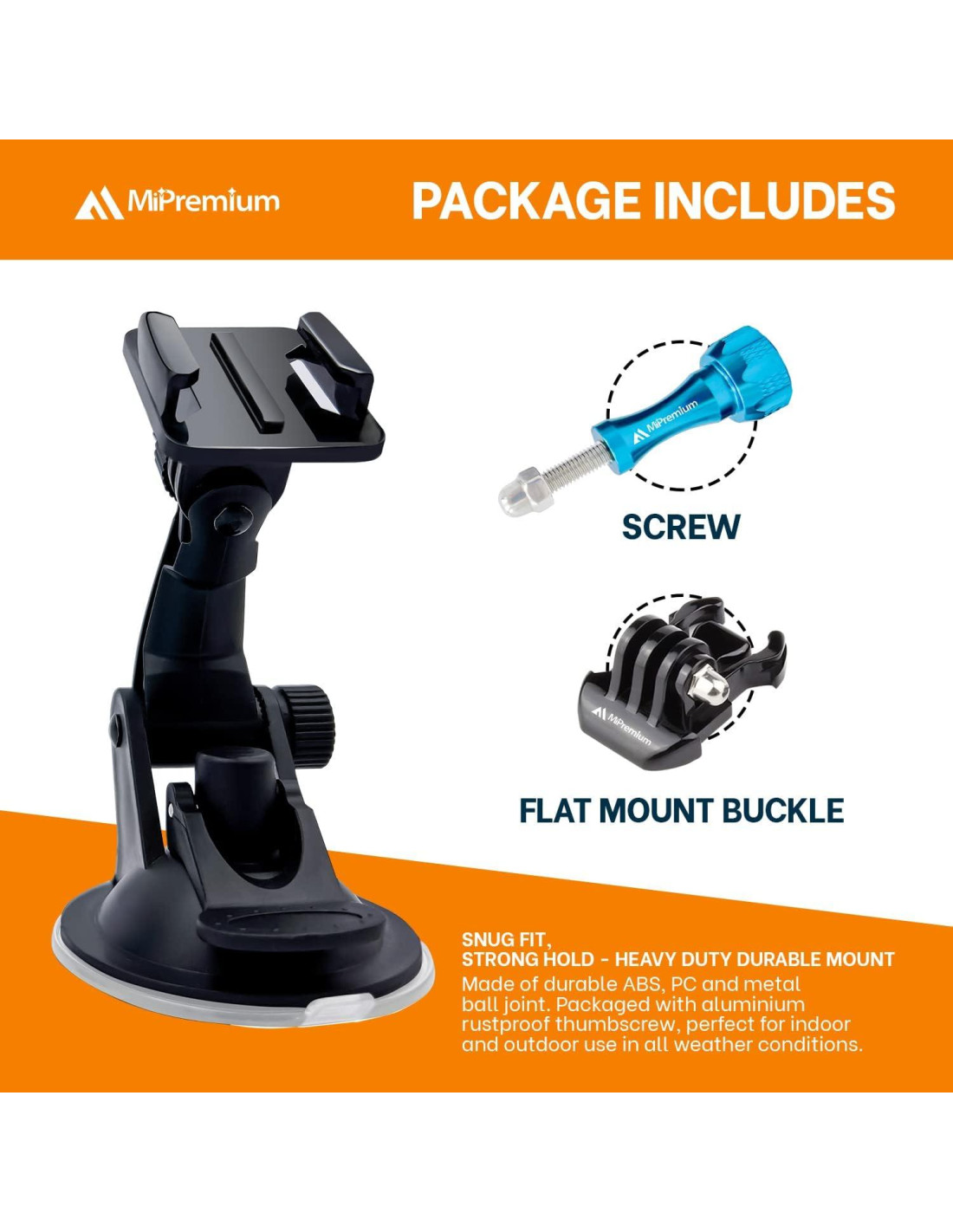 - No rompas otra cámara de acción: Diseñado para mantener tu cámara de forma segura y firme durante tus emocionantes paseos. La cámara de ventosa MiPremium está hecha de dos capas de TPU para ofrecer una gran capacidad de succión. Coloca nuestro soporte de cámara en parabrisas, cristales, ventanas, tableros, incluso en el capó del coche y en cualquier otra superficie lisa, convirtiéndolo en un soporte de ventosa perfecto para GoPro y otras cámaras de acción.