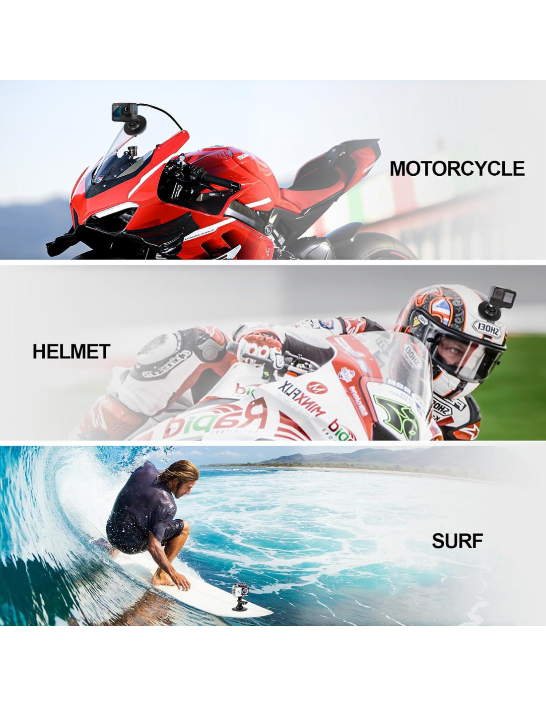 - [Montaje Universal] : Diseño innovador con una base de TPU flexible que se adapta mejor a los accesorios de gopro, cascos de motocicleta u otras superficies curvas. Compacto y estable, asegura un agarre seguro, reduciendo el riesgo de caídas accidentales