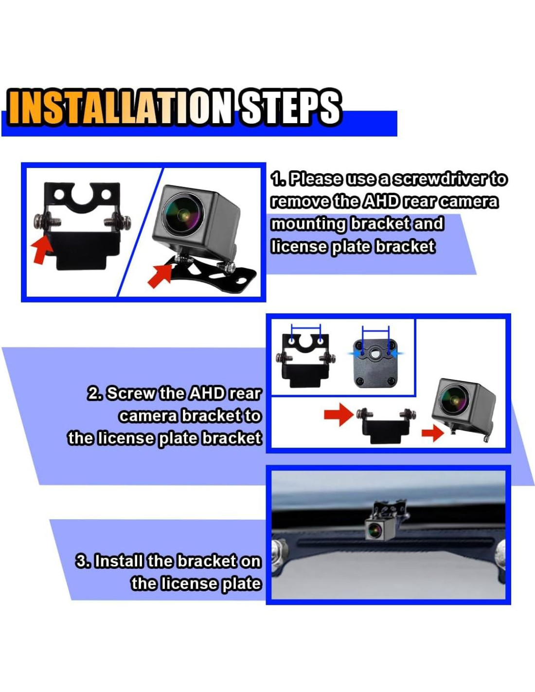 - [Solo se Ajusta a Placas de Licencia de EE. UU.] Este soporte de cámara de vista trasera es adecuado para placas de licencia de automóviles de EE. UU. Generalmente adecuado para cámaras traseras. Preste atención a la parte superior e inferior de la imagen de la cámara inversa antes de la instalación para evitar invertir la cámara inversa.