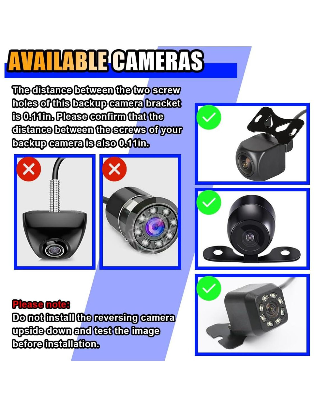 - [Tamaño] La distancia entre los dos orificios de tornillo de este soporte de cámara inversa es de 2.79 mm (0.11 in), adecuado para cámaras traseras con un espaciado de orificios de tornillo de 2.79 mm. Antes de realizar un pedido, confirme la distancia entre los dos orificios de tornillo de su cámara inversa.