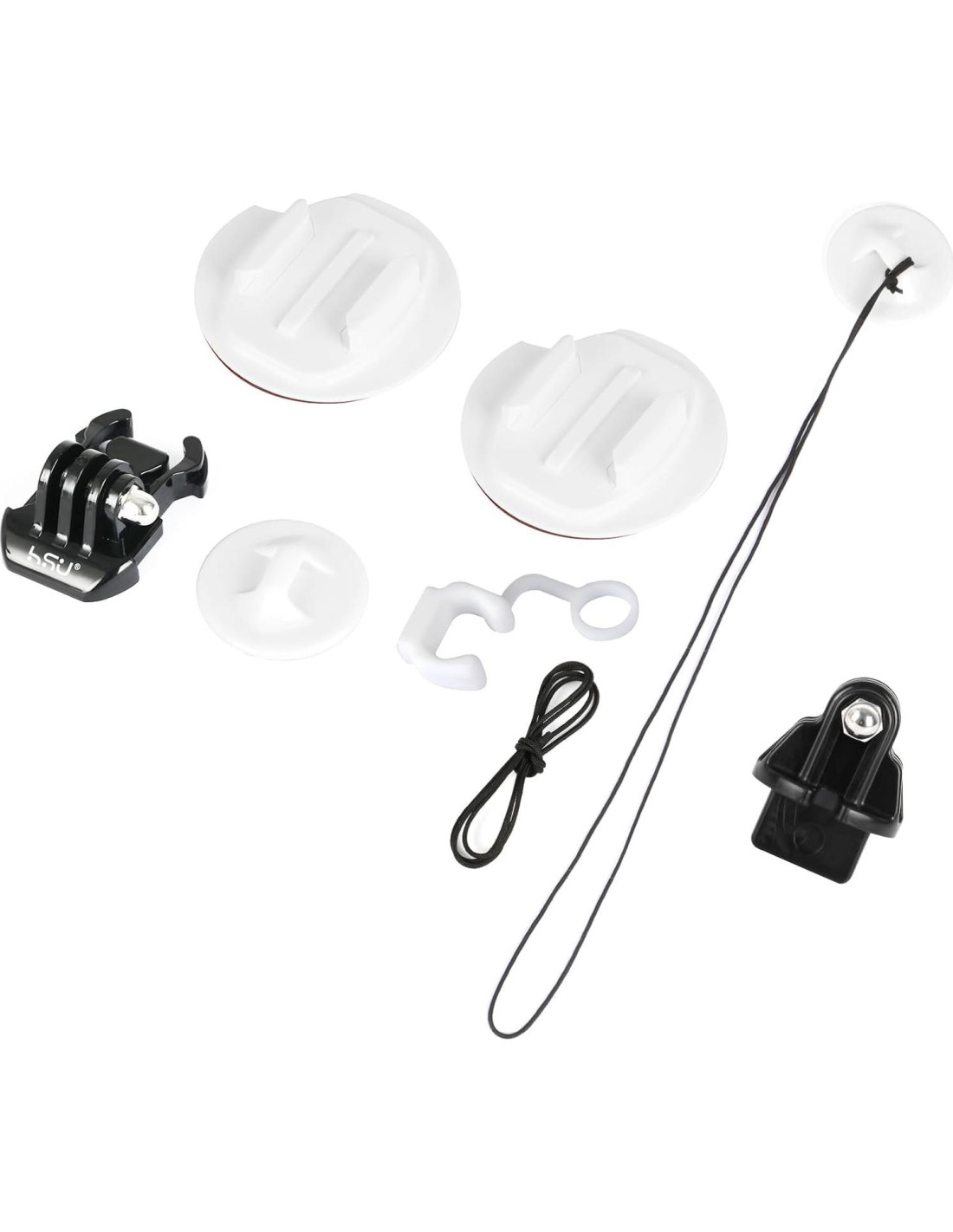 - Montaje Universal para Surf: Este kit de montajes para surf de GoPro tiene todo lo que necesitas para surfear, incluyendo montajes adhesivos para tabla de surf, anclajes adhesivos, hebilla de liberación rápida, tapón de bloqueo de goma y cuerdas para cámara.