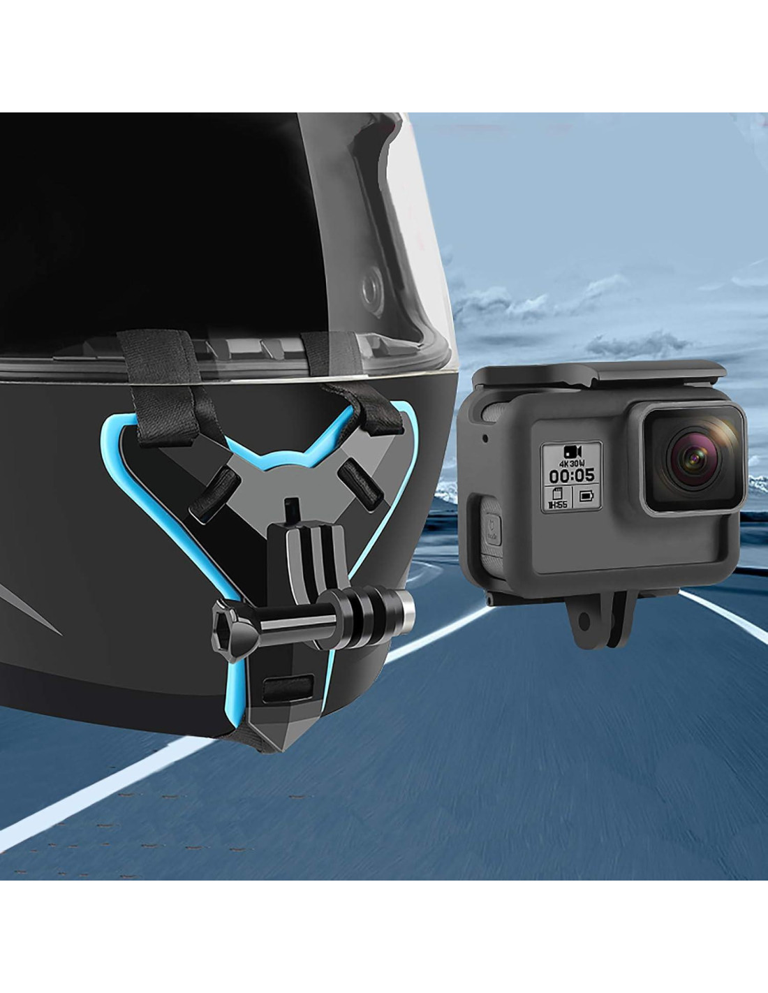 - Diseño Único: Con diseño de correa, el soporte se puede fijar en la posición de la barbilla de su casco de cara completa. Ajuste la tensión mediante la hebilla y es lo suficientemente fuerte para asegurar la cámara