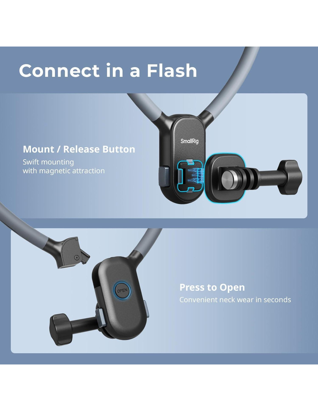 - Montaje/Liberación con Un Clic para Configuración Sin Esfuerzo: El botón ágil asegura una rápida sujeción/desprendimiento de tu cámara de acción, ahorrando tiempo durante actividades de ritmo rápido.